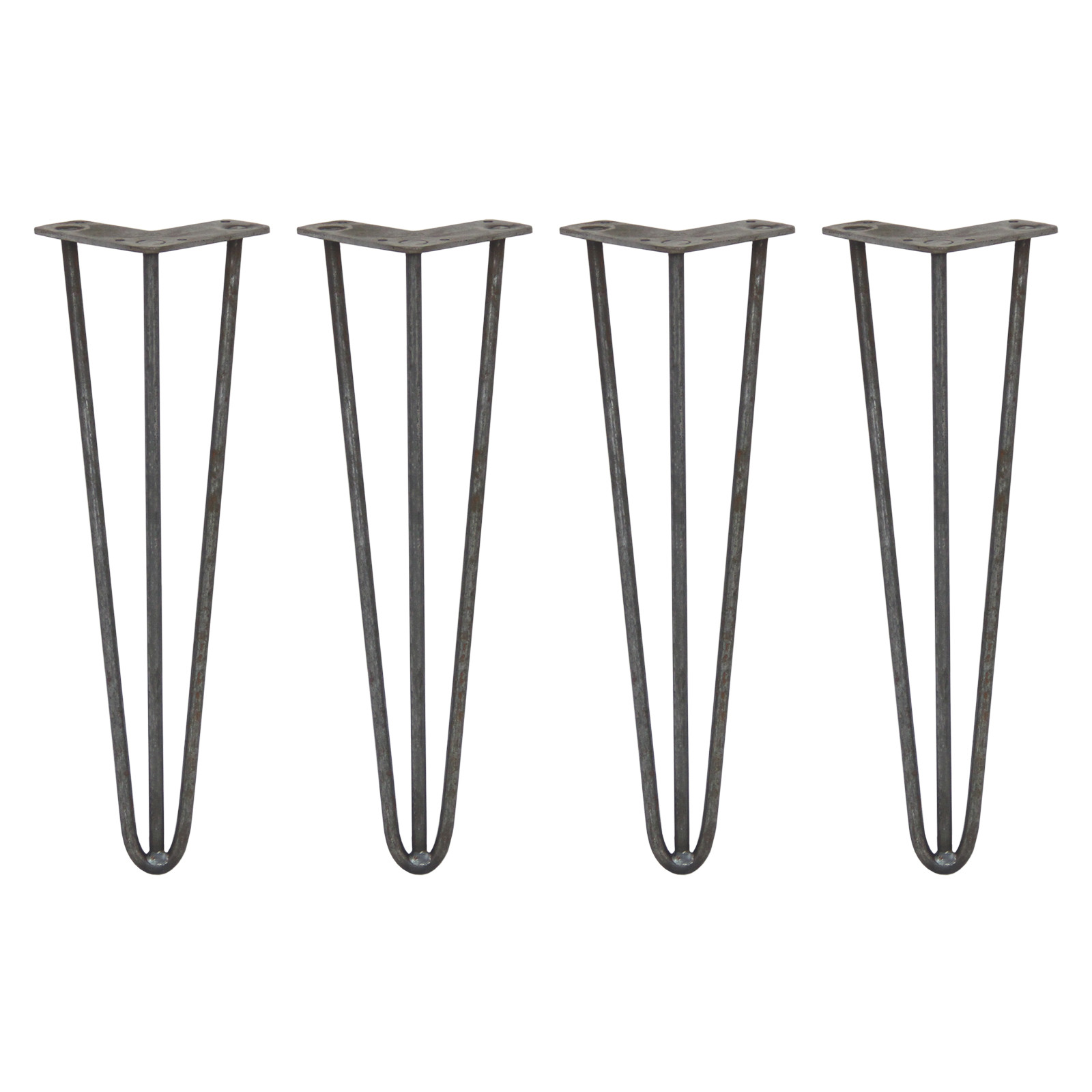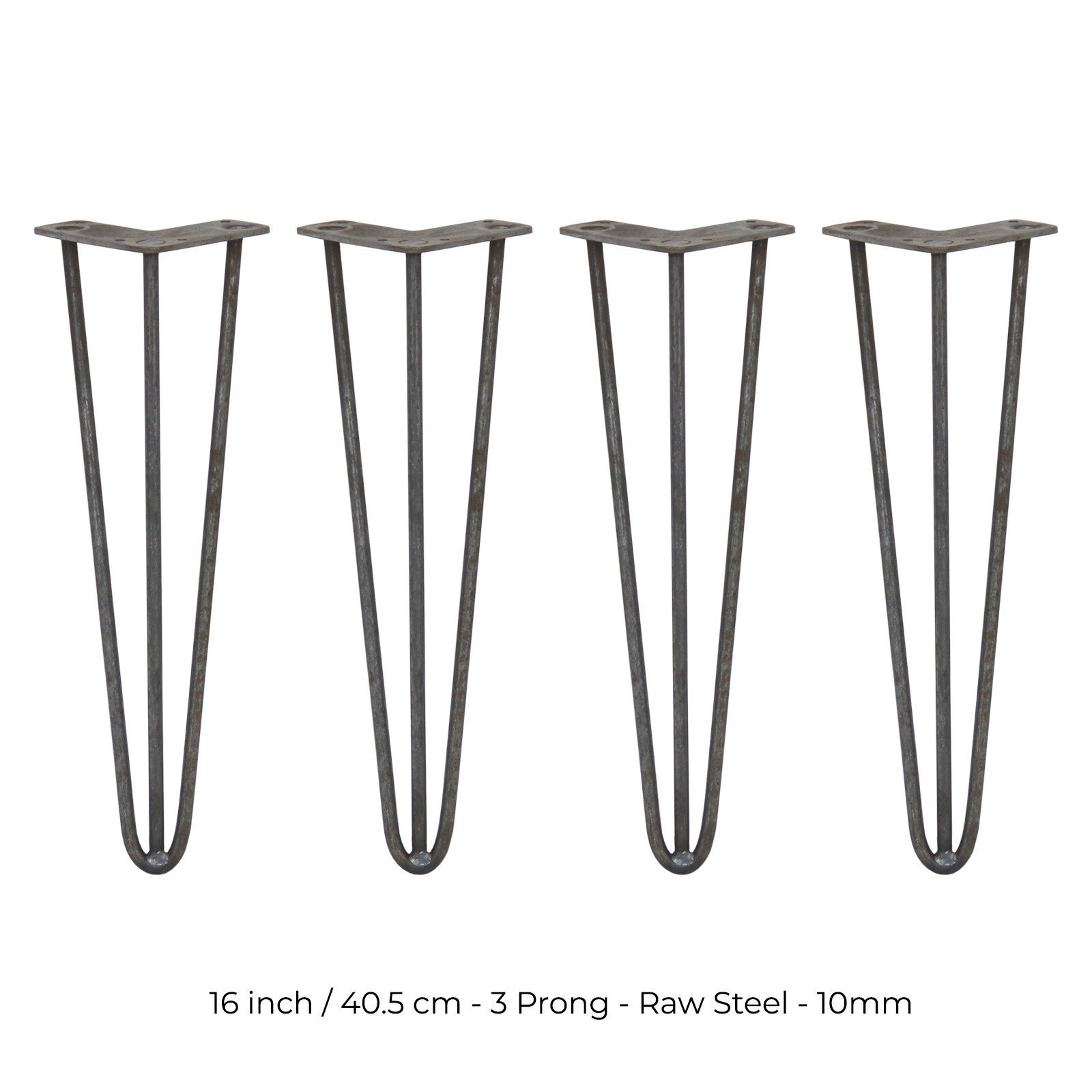 4 x 16" Hairpin Legs - 3 Prong - 10mm - Raw Steel