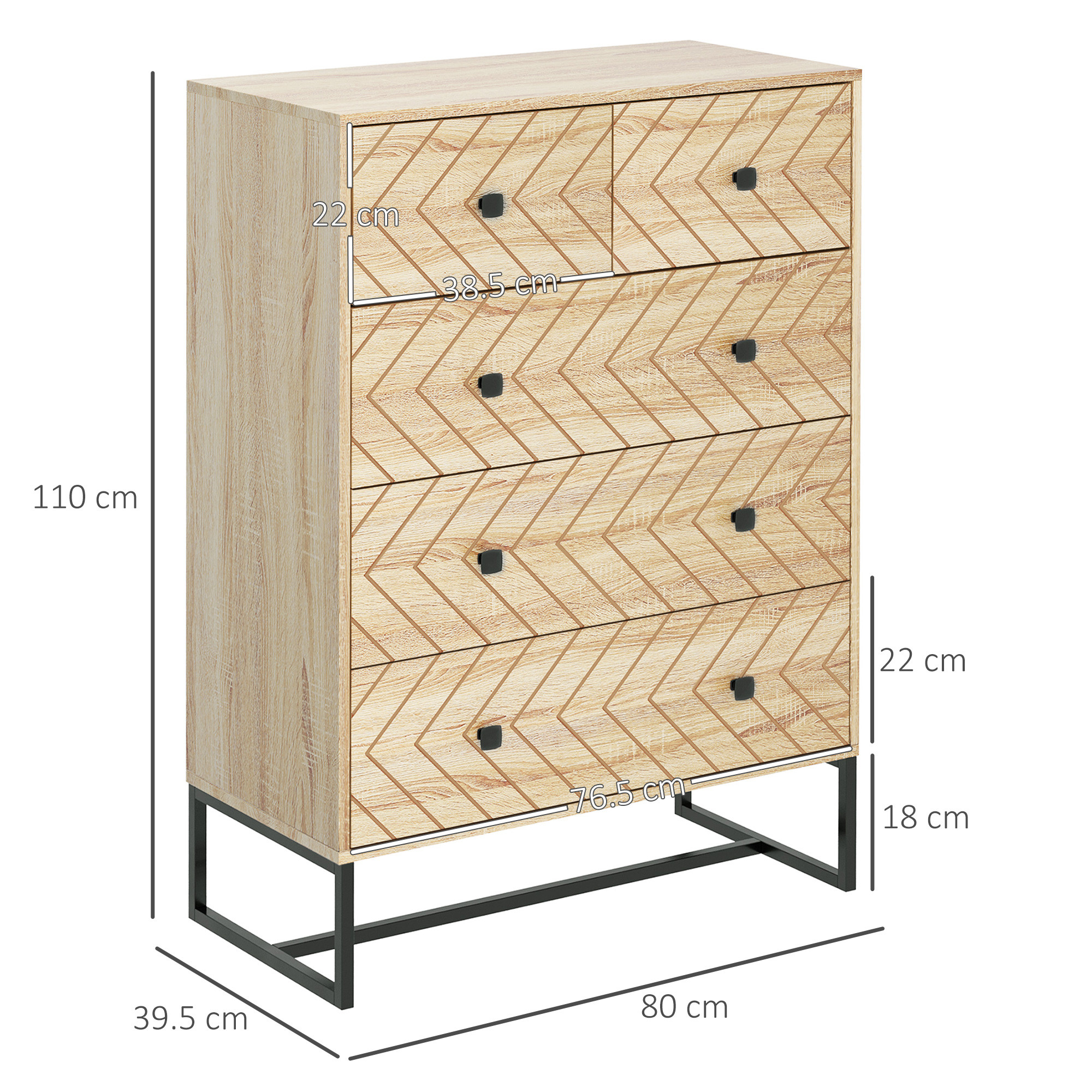 - SPACIOUS: Features two small top drawers and three larger drawers, great for keeping your home organised and tidy. UNIQUE DESIGN: Zigzag design of chest of draws adds an interesting touch to your furniture collection.