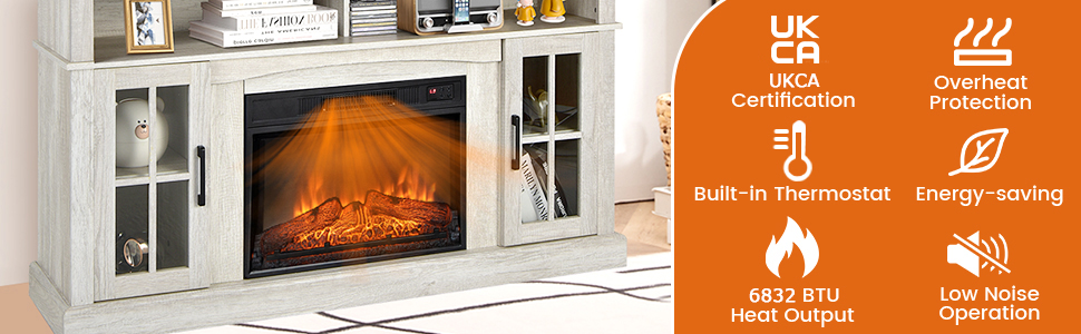23” Electric Fireplace: This indoor furniture includes an 23” electric fireplace with 4650 BTU so that it can heat the area up to 161 square feet. Meanwhile, the temperature can be adjusted from 17℃-27℃ according to your heating needs. And the timer control function allows you to set the desired time in advance. The overheat protection and CSA certification ensure your safety.