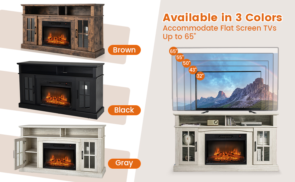 Fit 65 Inches TVs: This fireplace TV stand is able to support TVs up to 65”. Therefore, you can watch TV while enjoying uninterrupted warmth with constant temperature design. In addition, there are 2 cable management holes on the back to reduce clutter. And the anti-tipping device makes this TV console safe to use.