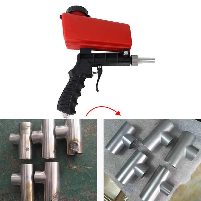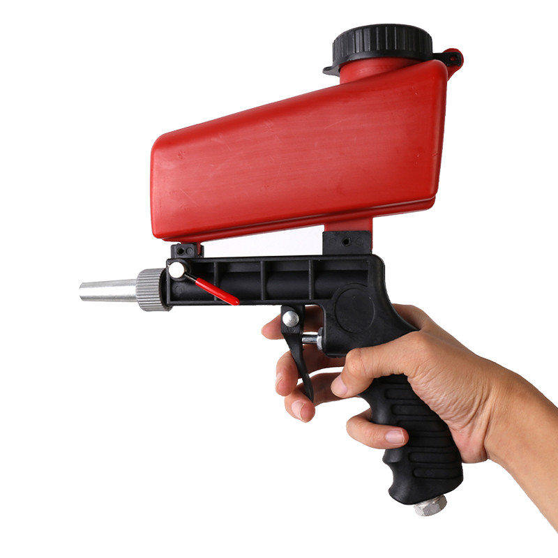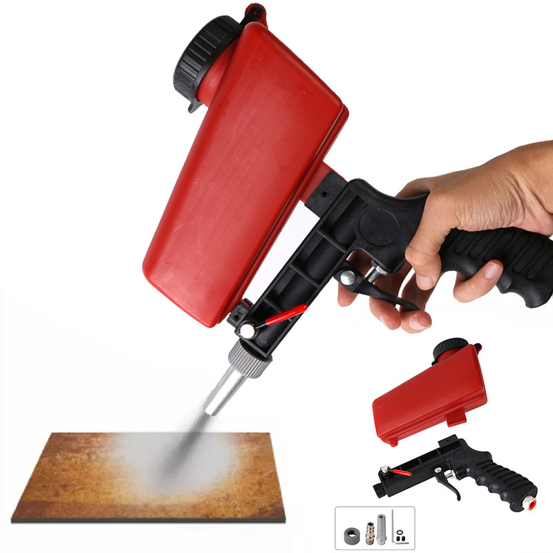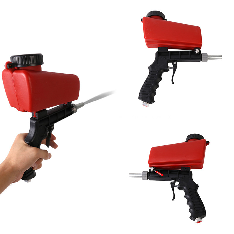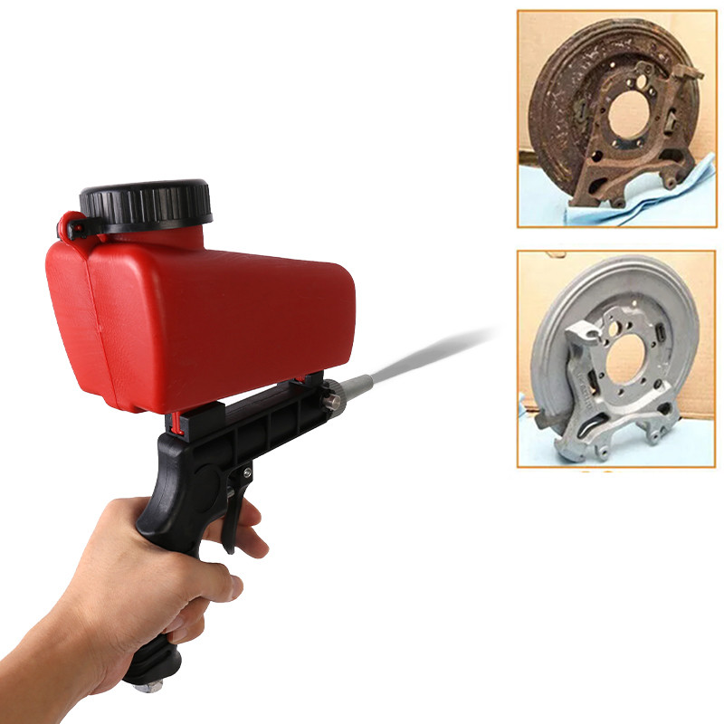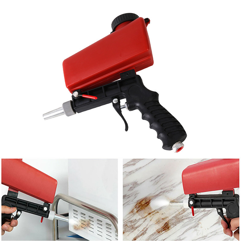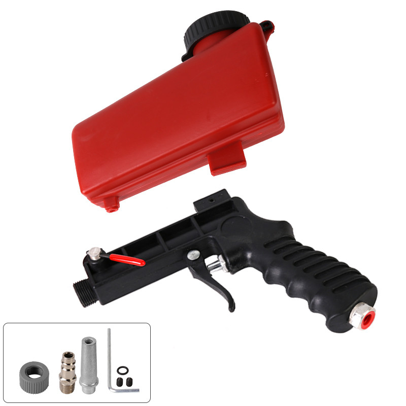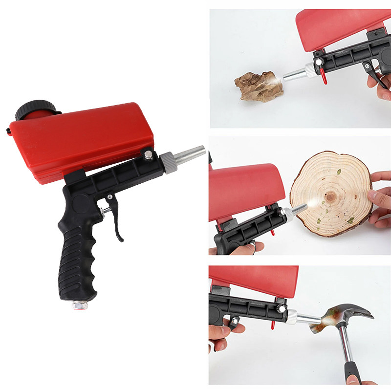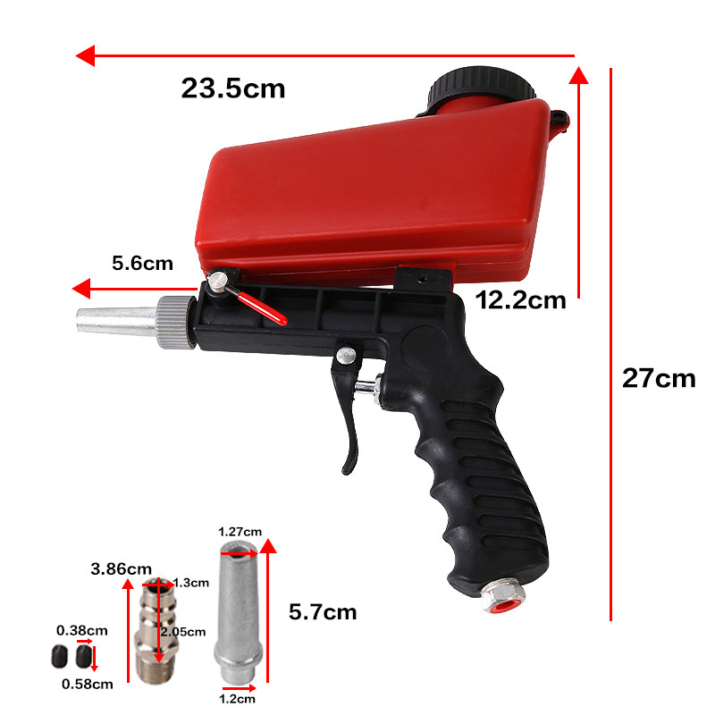 Air Sandblasting Gun Compressor Handheld Sand Blaster Shot for Remove Stains Rust and Clean Surfaces - Black + Red.
