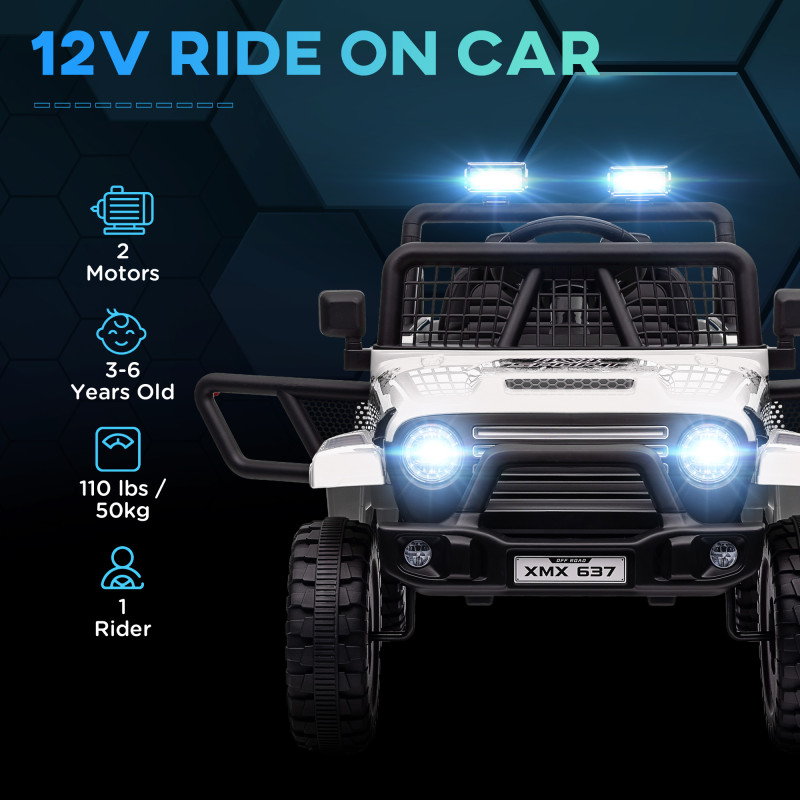 AIYAPLAY 12V Battery Powered Kids Ride-On Car, Electric Truck w/ Spring Suspension, Remote, Music, Horn, Lights, White