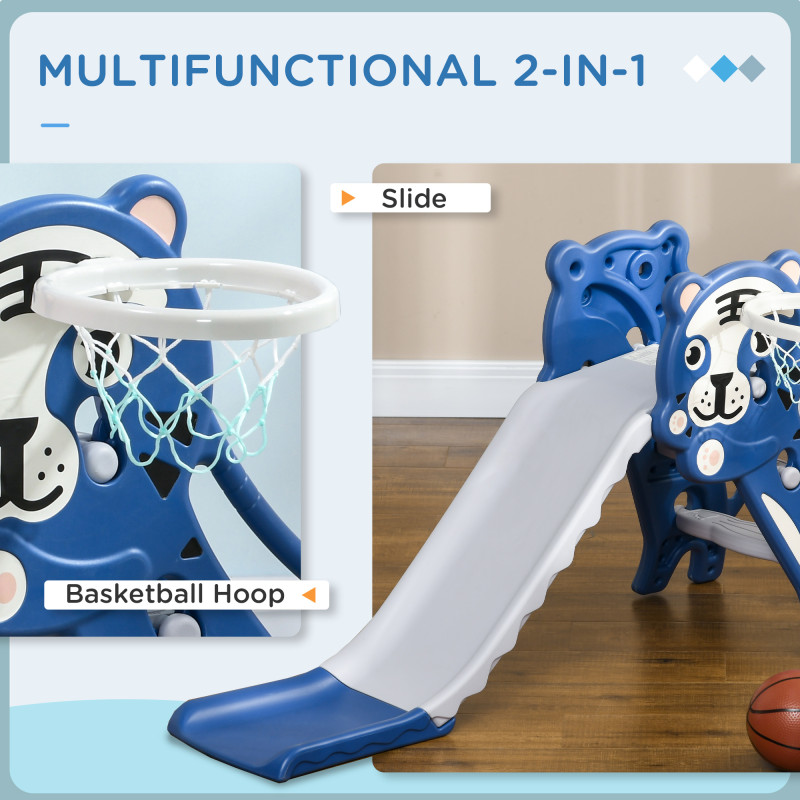 AIYAPLAY 3 in 1 Baby Slide for Indoor Use with Climber, Basketball Hoop, Basketball, for Ages 18-36 Months - Blue