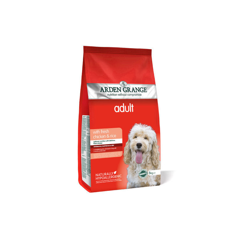 Arden Grange with Chicken and Rice Adult Dog Food is a complete, super premium pet food for normally active adult dogs. It contains fresh chicken which is a delicious and highly digestible protein source.Highly palatable and digestible chicken recipe, is ideal for normally active adult dogs. Includes prebiotics, joint supplements, krill and yucca extract