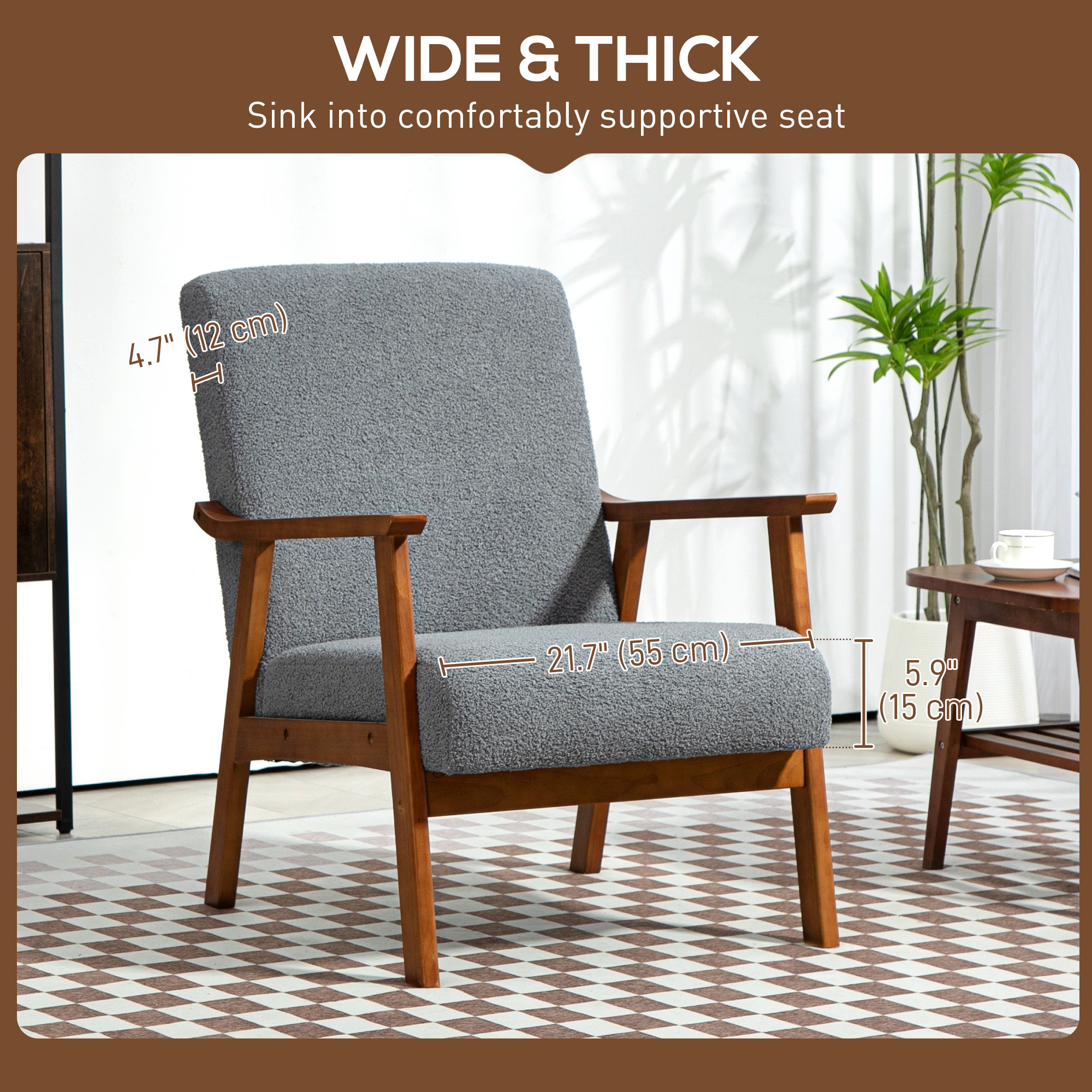 Armchair with Wide Seat, Boucle Accent Chair, Thick Padded Occasional Chair with Solid Wood Frame for Living Room Bedroom Home O