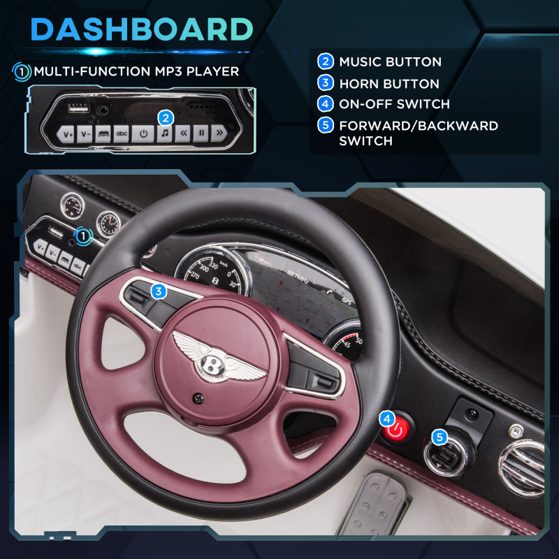 Bentley Mulsanne Licensed Kids Electric Ride-On Car, with Remote Control. LED lights, Music - White