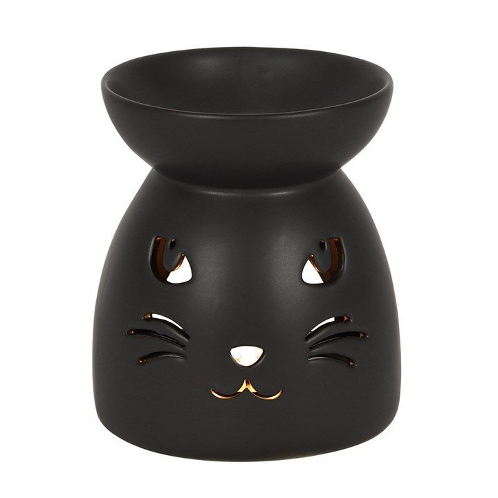 This black ceramic oil burner features a cutout cat face and a cool, matt finish. Compatible with both fragrance oil and wax and perfect for Halloween or spooky decor! Product Dimensions: H10.5cm x W9.2cm x D9.2cm Packaged Dimensions: H13.6cm x W11.5cm x D11.5cm