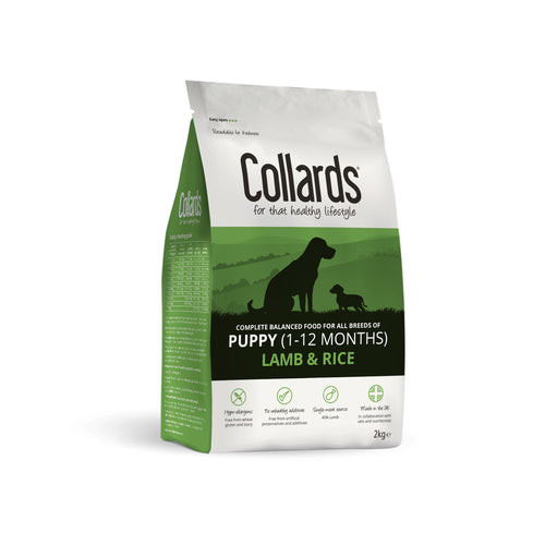 Collards Hypo-allergenic Puppy Lamb and Rice Dry Dog Food is a complete and balanced dry dog food which is suitable for all breeds of puppies between one and twelve months old. The lamb recipe can be fed alone as a complete meal, or as a crunchy kibble mixer as part of a mixed diet with a Collards wet puppy recipe.