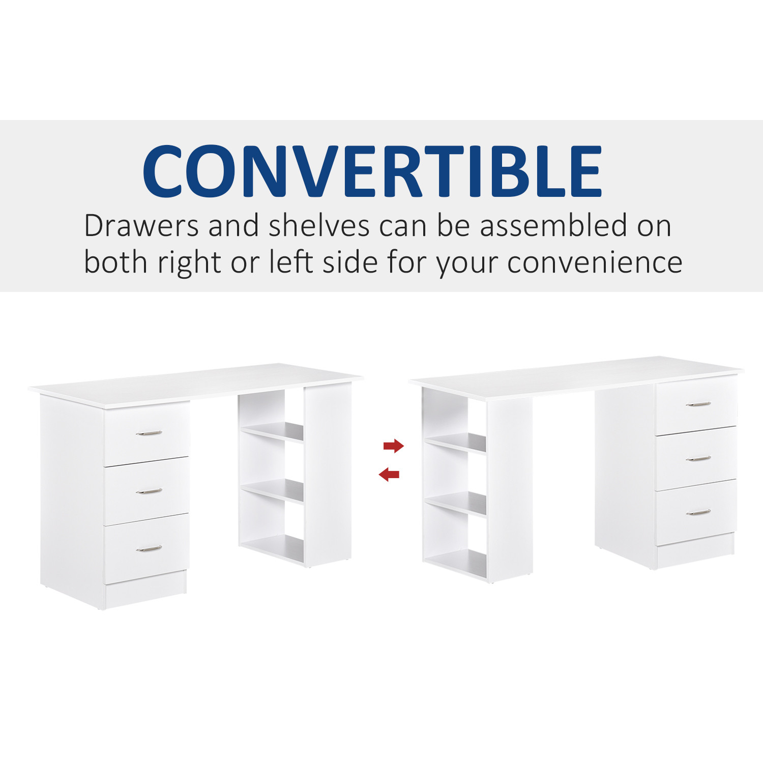 - 3-Tier Shelves & 3 Drawers: This home office desk features 3 drawers for storing your office essentials. 3 open shelves provide extra space for displaying your favourite items. The drawer can be installed back or forth according to your needs, which makes the open shelf can be on the left or the right side