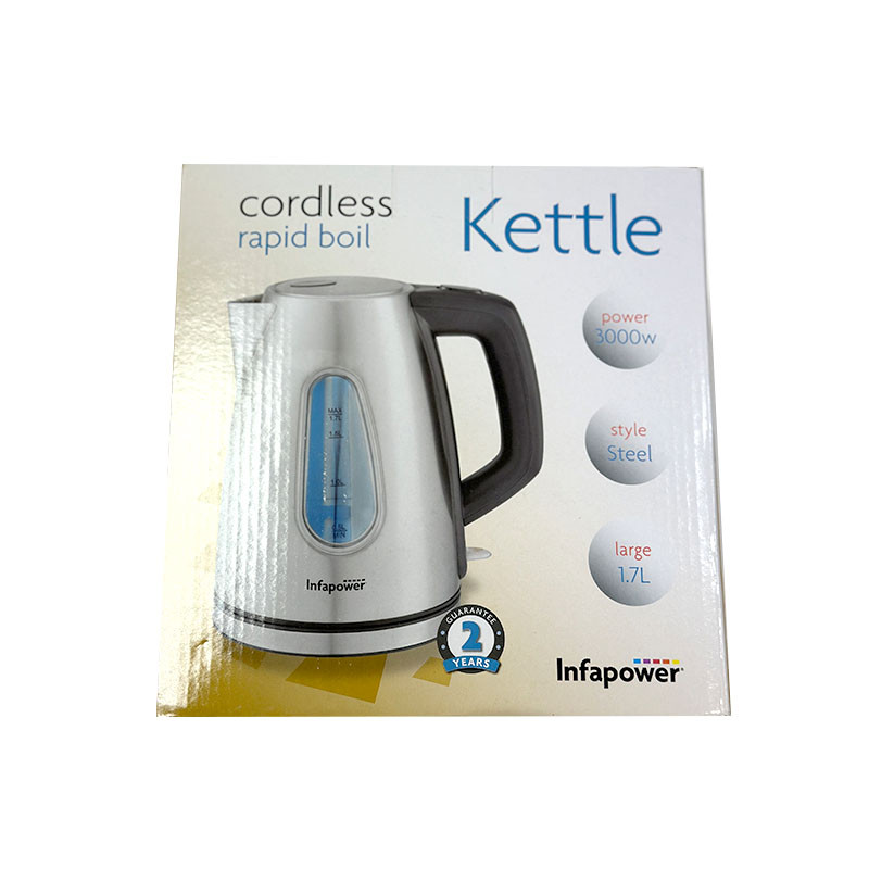 Cordless Rapid Boil Steel Kettle 3000W - 1.7L.