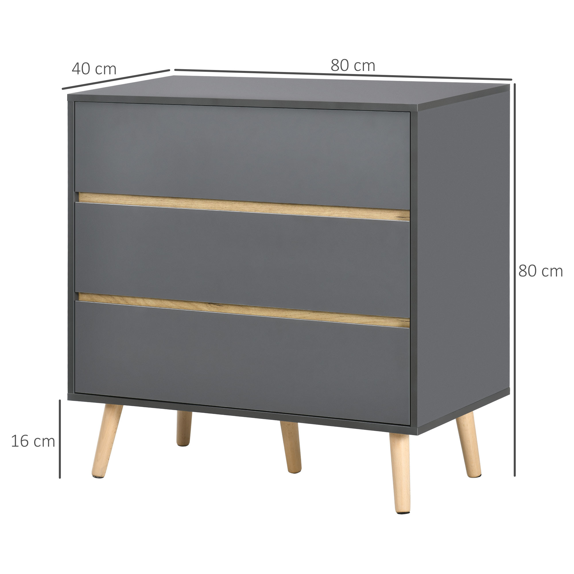 Drawer Chest, 3-Drawer Storage Organiser for Bedroom, Living Room, 80cmx40cmx80cm, Dark Grey