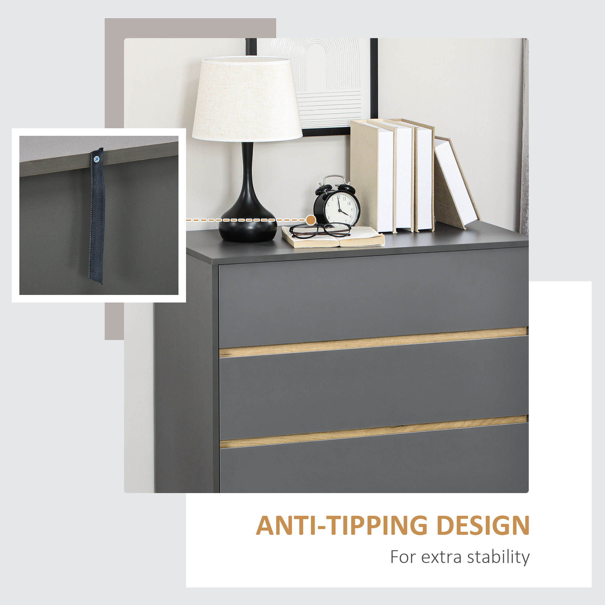 - Bold design: Deep grey colour of this drawer chest for a moody look, with wood-effect accents bringing a natural touch.