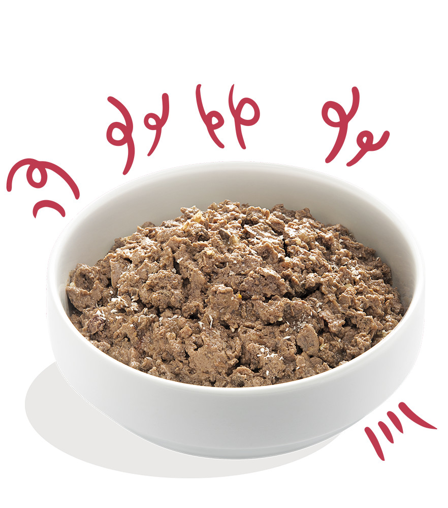 *Produced from 100% controlled organic farming. Organic beef* 51%, organic pork*, organic chicken*, minerals, organic coconut* 0.15%, organic chia seeds* 0.15%, organic rosehip* 0.1%, organic chamomile* 0.1%.