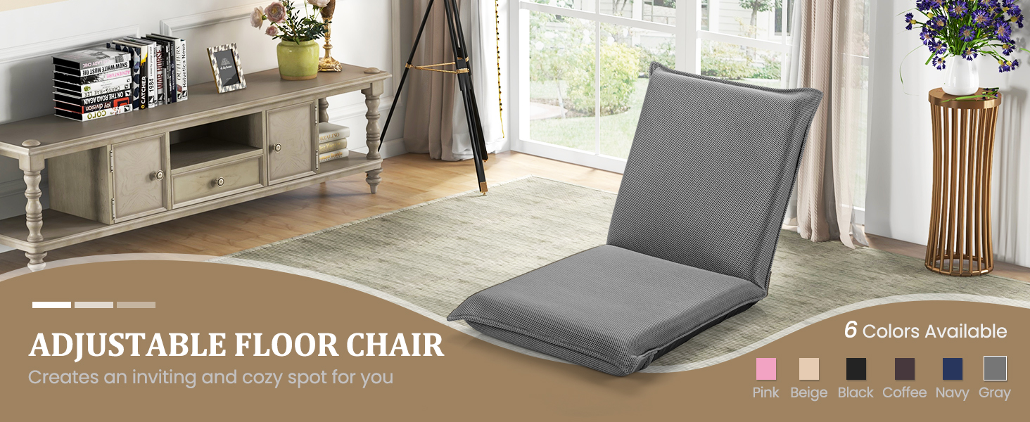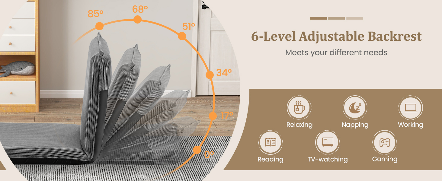 Folding Floor Chair with Reclining Function and 6 Adjustable Positions