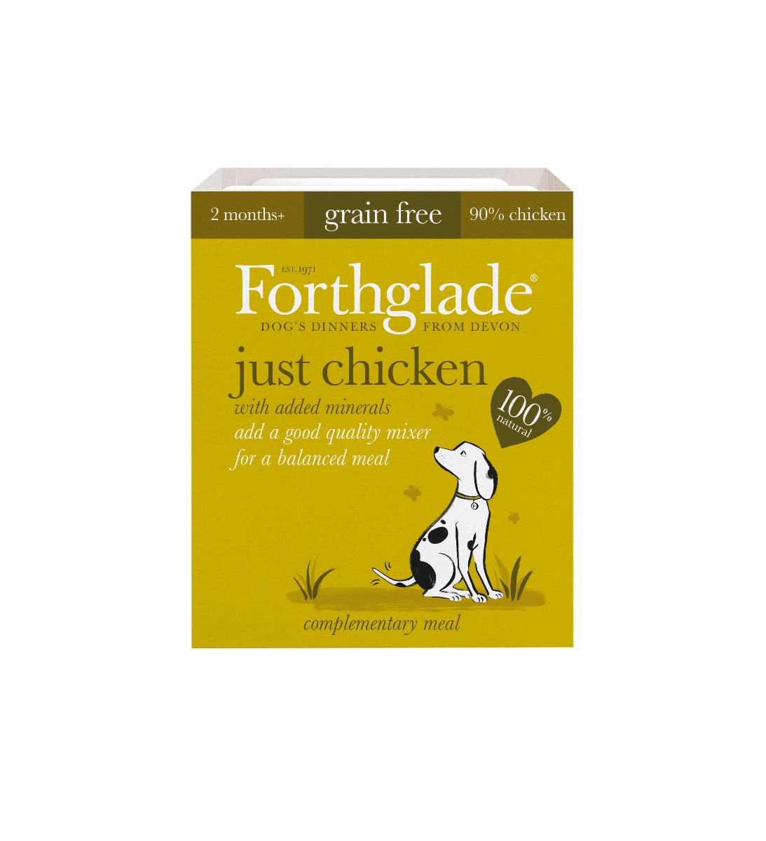 Forthglade's Just Chicken recipe contains just 90% Chicken along. Each serving is gently steamed to retain as much natural flavour and goodness as possible. Easy to digest and gentle on even the most sensitive of tummies.