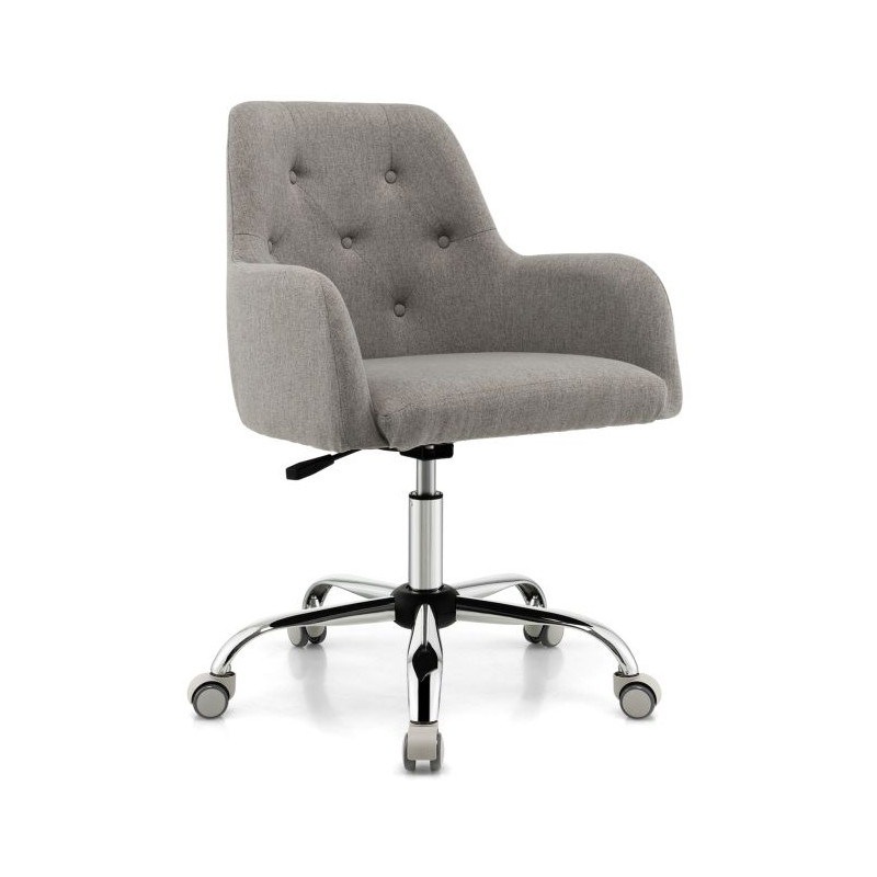 This tufted task chair is an ideal choice for you or your family to work, study or make up. It has an up and down adjustment lever to control its height within 10 cm adjustment range. Besides, with smooth swivel system, you can rotate the seat as you like and freely chat with friends from all direction. Ergonomic backrest, sponge padded cushion and curved armrests make it super comfortable to sit or lean. What's more, with the help of 5 durable wheels, this home office chair can be easily moved. And you can use it in living room, bedroom, reception room, office, or study for different uses. Moreover, it's easy to assemble and maintain.