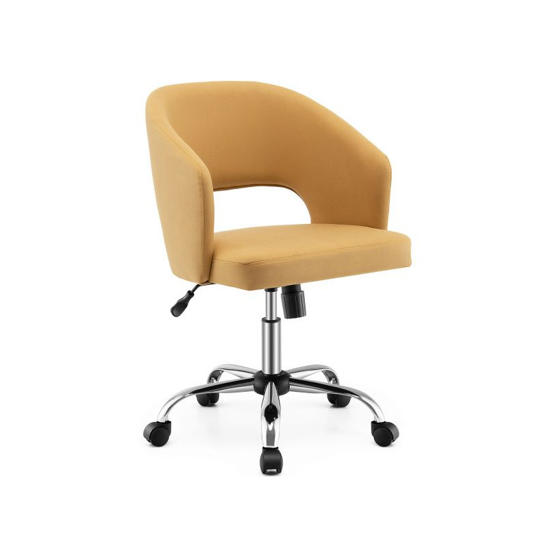 Seat with Ergonomic Design: This upholstered swivel chair features curved armrests and backrest. The embracing design will offer you a good back support. Additionally, there is a hole on the backrest to keep a good ventilation and prevent you from stuffiness on summer days.