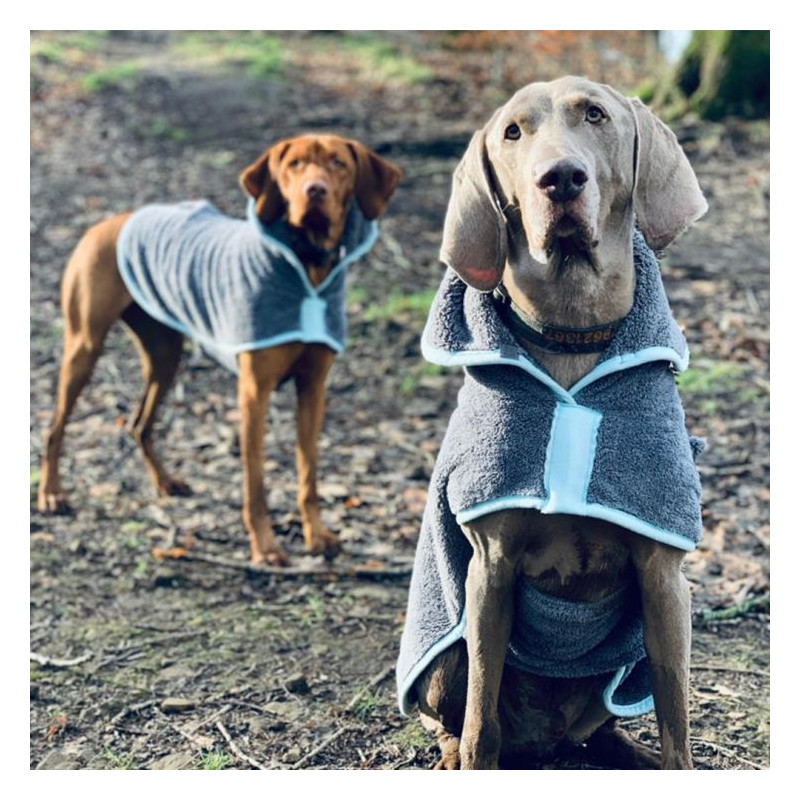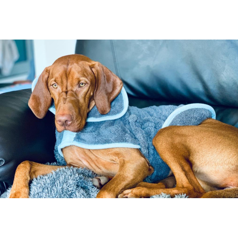 The advanced microfibre wicks water from the dog’s coat leaving them fresh and dry. The advanced microfibre wicks water from the dog’s coat leaving them fresh and dry. It uses the highest quality microfibre and is easy to put on with a simple strap to hold the coat in place