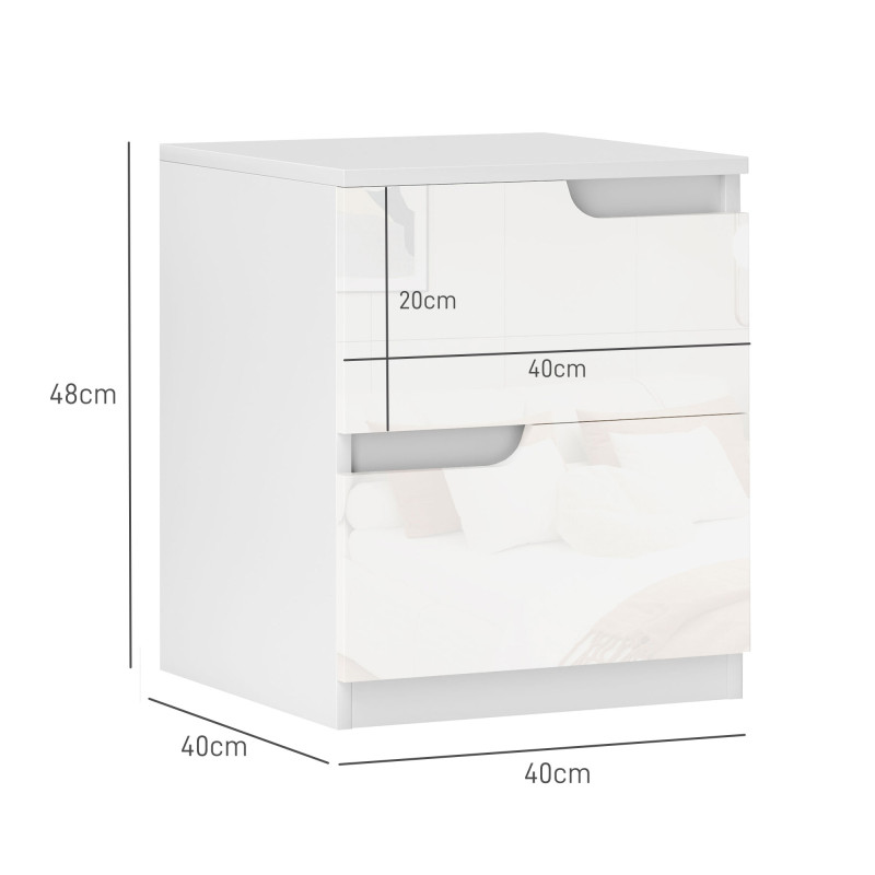 High Gloss Bedside Table - White