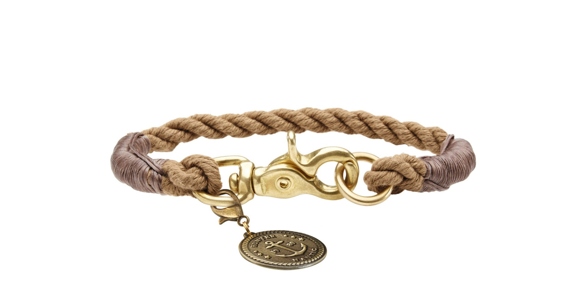 | Taking a purely maritime attitude towards life: the LIST collection will provide all North Sea fans with deep-sea value for their four-legged holiday companions. With its nautical rope look, this collar will win you over with the sophisticated way that it combines functionality and design. Its sturdy braiding means that it is not just robust, but also makes for an eye-catching nautical accessory. The brass-coated fastener withstands all kinds of weather – a real advantage in temperamental maritime climates. One exclusive detail is the brass plate: the logo and geographical coordinates of the HUNTER headquarters along with an anchor icon embellish this little trinket, which can also be used as a high-quality key ring. |