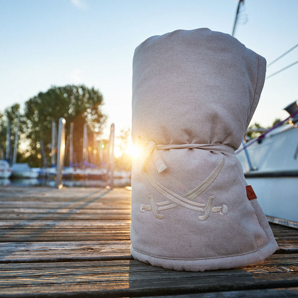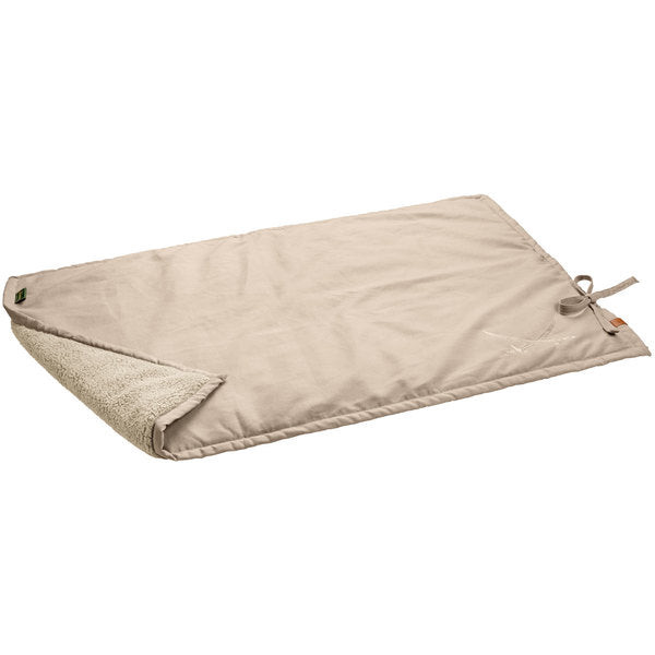 The upper side is made from a cotton-linen mix and is embroidered with the crossed swords, while the underside indulges your pet with a soft plush material. A small label also displays the Sansibar logo and provides an exciting contrast to the two available colours. Thanks to its integrated cords, the blanket can easily be rolled up and transported, saving space.