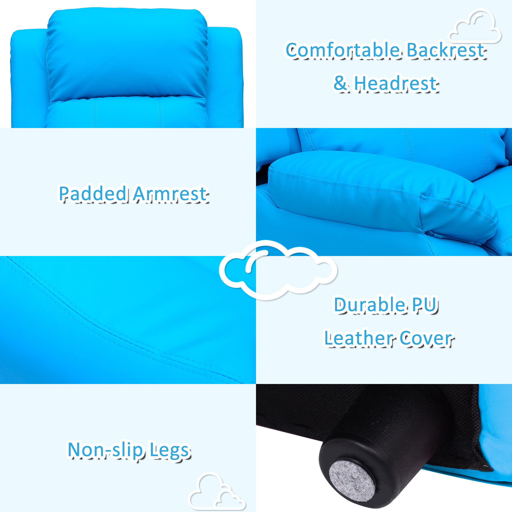Kids Children Recliner Lounger Armchair Games Chair Sofa Seat PU Leather Look w/ Storage Space on Arms (Blue)