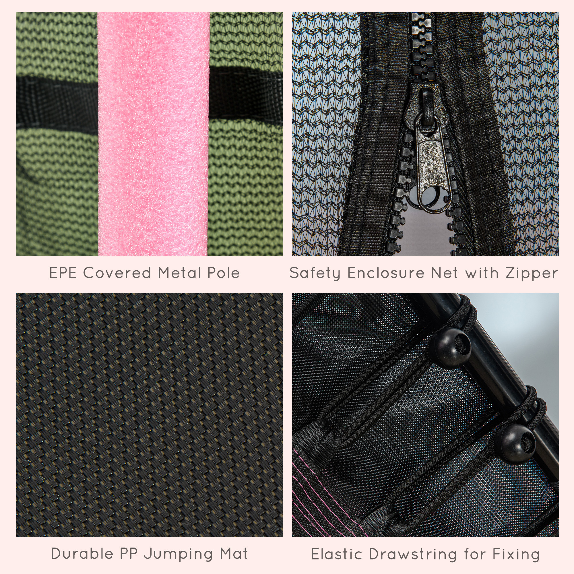 - Zipped Net Door: This small trampoline provides easy access in and out.