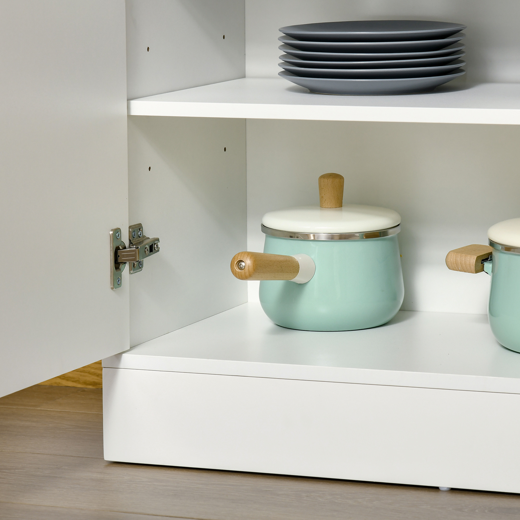 - ADJUSTABLE SHELVES: Inner levels of this larder cupboard move up and down to different levels - easy to set to a position that is most suitable for you.