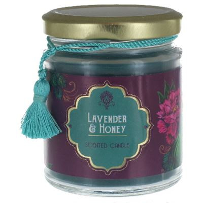 A beautiful gift candle in a glass jar scented with lavender and Honey and delivered in a gift box.
