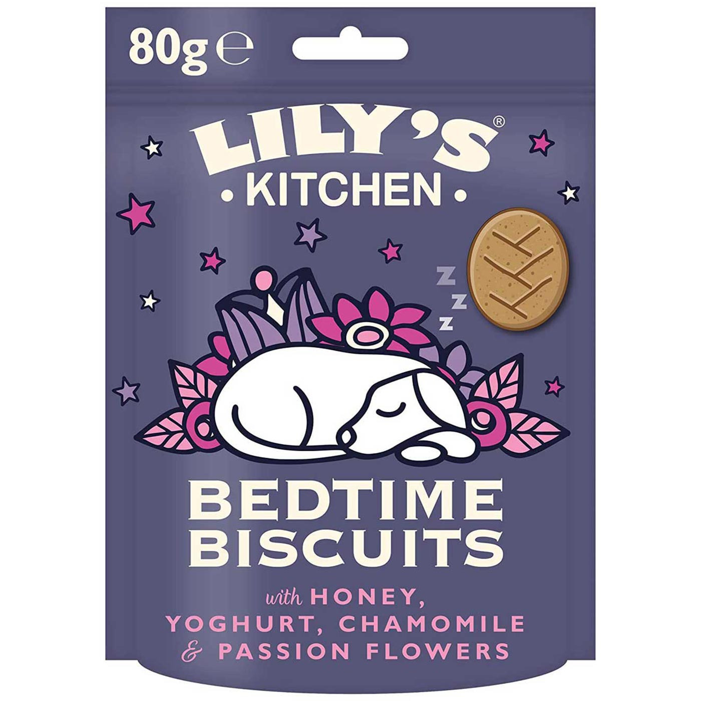 Who doesn't like a snack before bed? These traditional baked biscuits are the perfect thing to round off your dog's day. Made from nothing but organic, nutritional ingredients they are made to aid a beautiful night's sleep for your dog. Wheat-free and hypoallergenic, they contain probiotic yoghurt to aid digestion plus chamomile and passion flowers to soothe. They also make a smashing treat for pups.