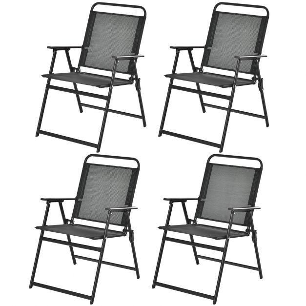 Outdoor Folding Chairs Set of 4 with Breathable Seat and Cozy Armrests