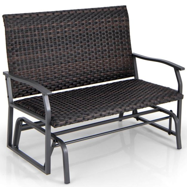 Outdoor Swing Glider Bench 2-Person Rattan Woven Glider Loveseat