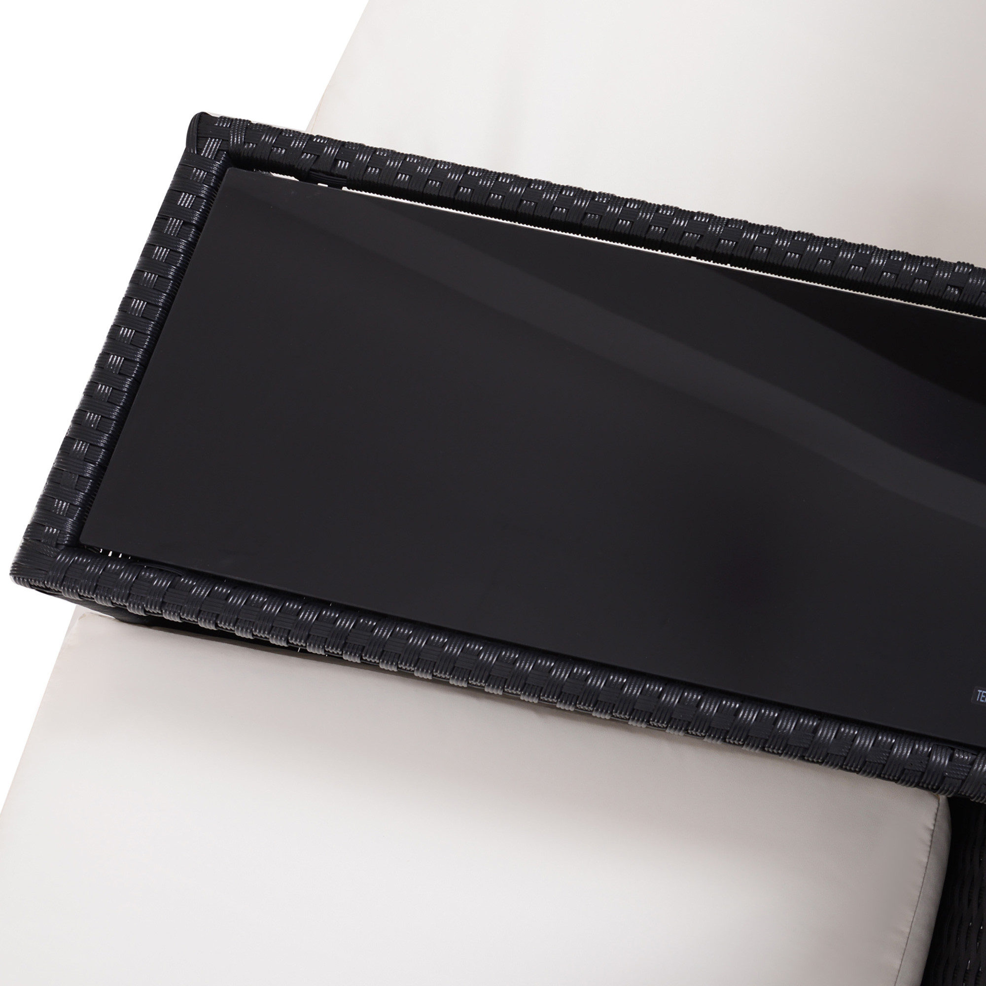 - COMFORTABLE AND SUPPORTIVE: Two padded seat cushions for you to sit peacefully, with a high back and armrests to encourage correct posture. Cushion covers are fire-retardant and can be spot cleaned easily. MIDDLE TABLE: Ideal for keeping drinks, food, books etc. close, with a sleek and beautiful tempered glass top which is easy to clean and maintain;