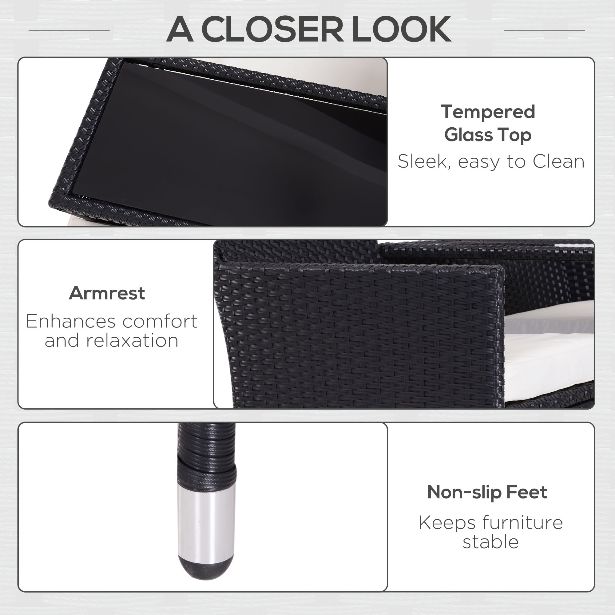 Outsunny 2-Seater Rattan Chair Set W/Middle Tea Table-Black