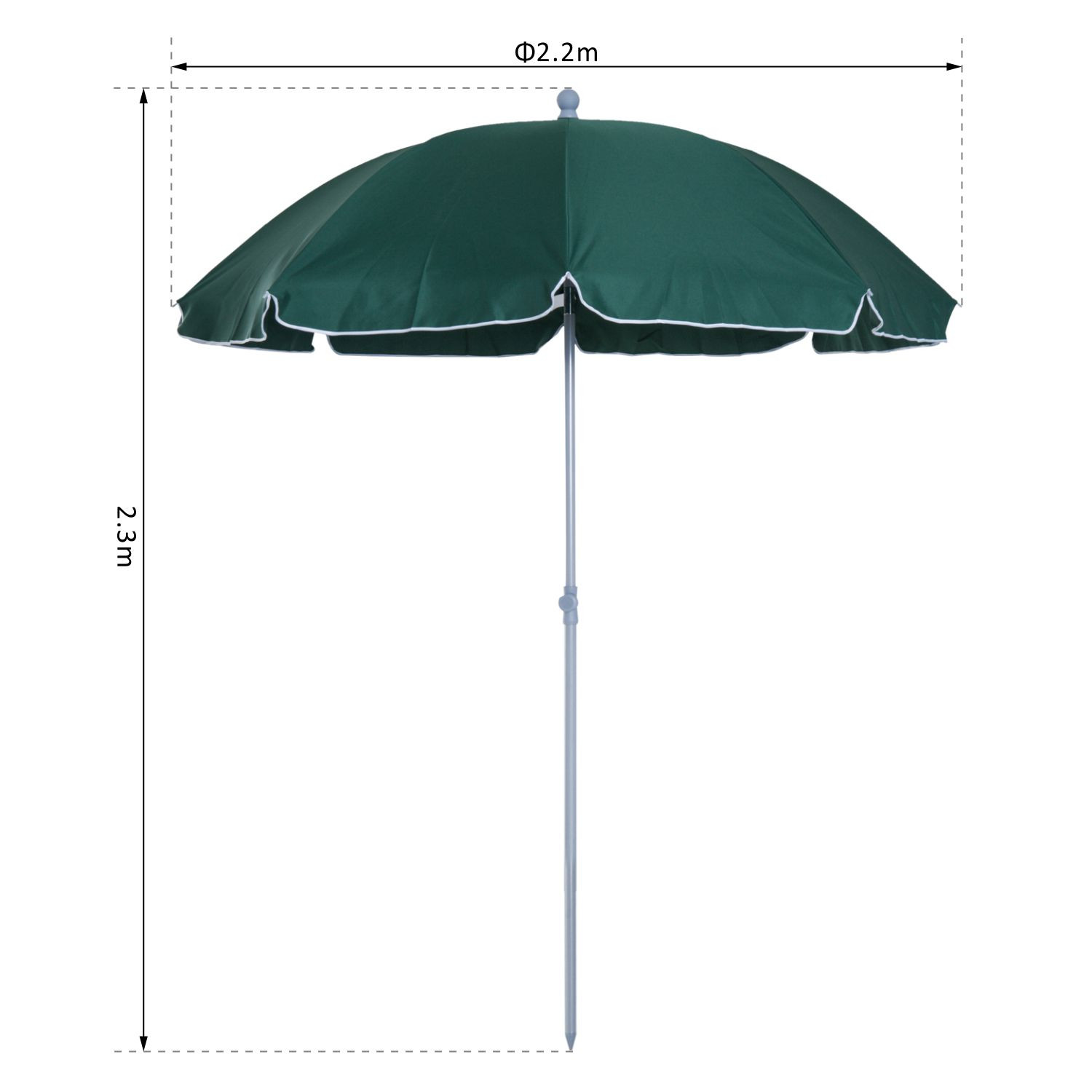 Outsunny 2.2m Beach Umbrella, Portable Parasol with Tilting Function, Outdoor Sunshade Shelter with 8 Ribs, Green