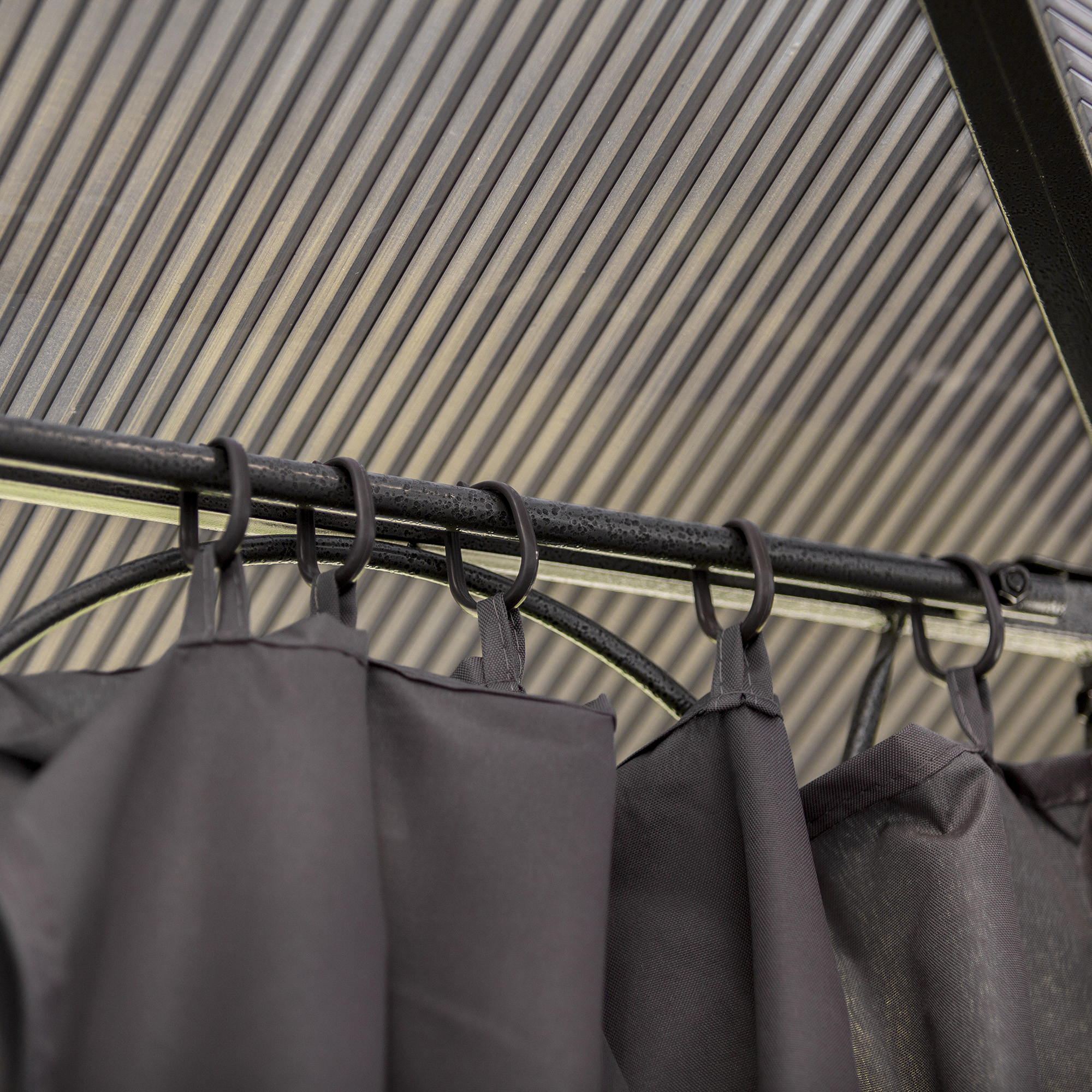 - PRACTICAL CURTAINS: Comes with four polyester curtains with double sided zipper to create a privacy and comfortable space for you. The outdoor polycarbonate gazebo's curtains can be easily fixed by velcro straps to let fresh air in.