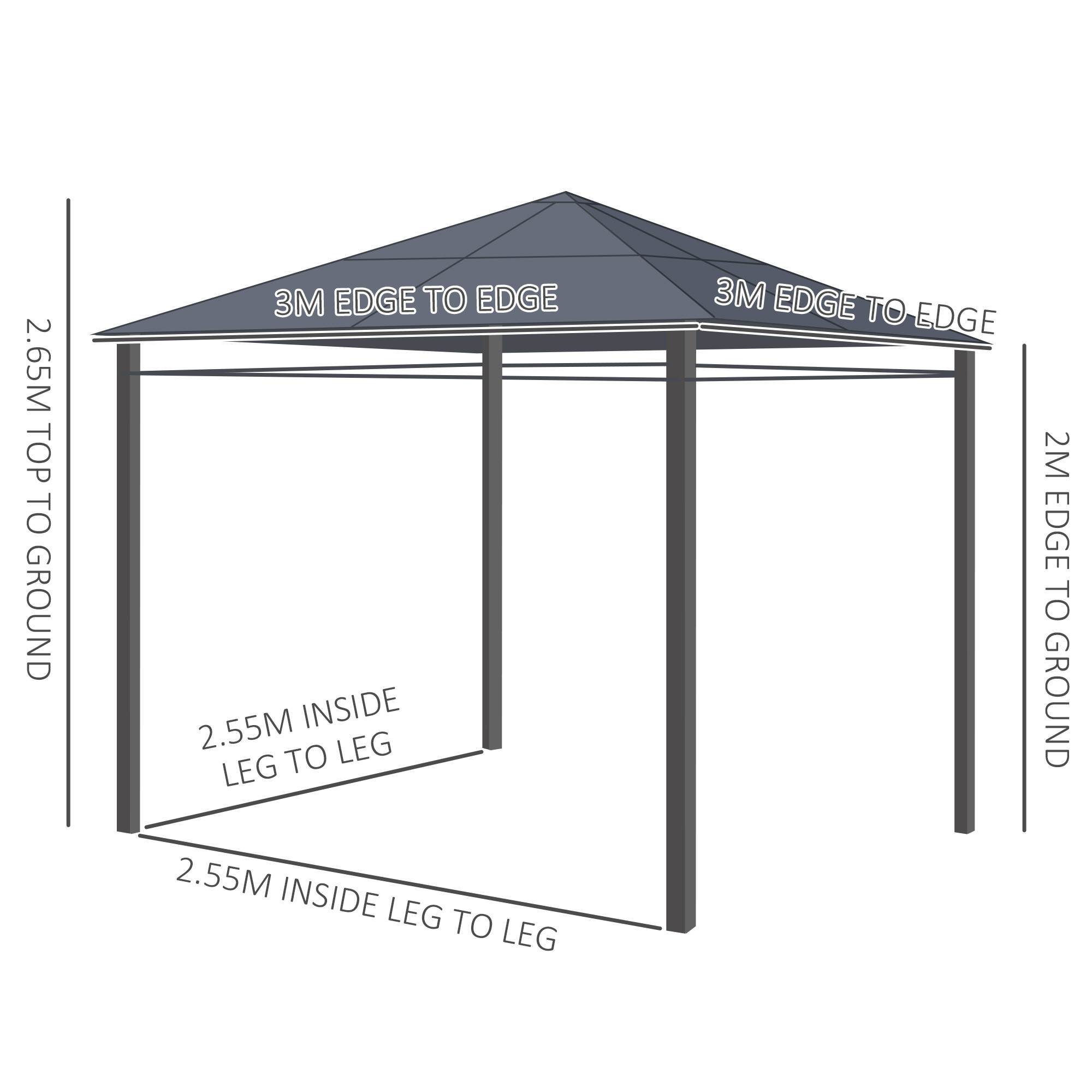 Outsunny 3 x 3(m) Hardtop Gazebo Canopy with Polycarbonate Roof, Permanent Pavilion Garden Gazebo with Curtains for Patio, Deck,
