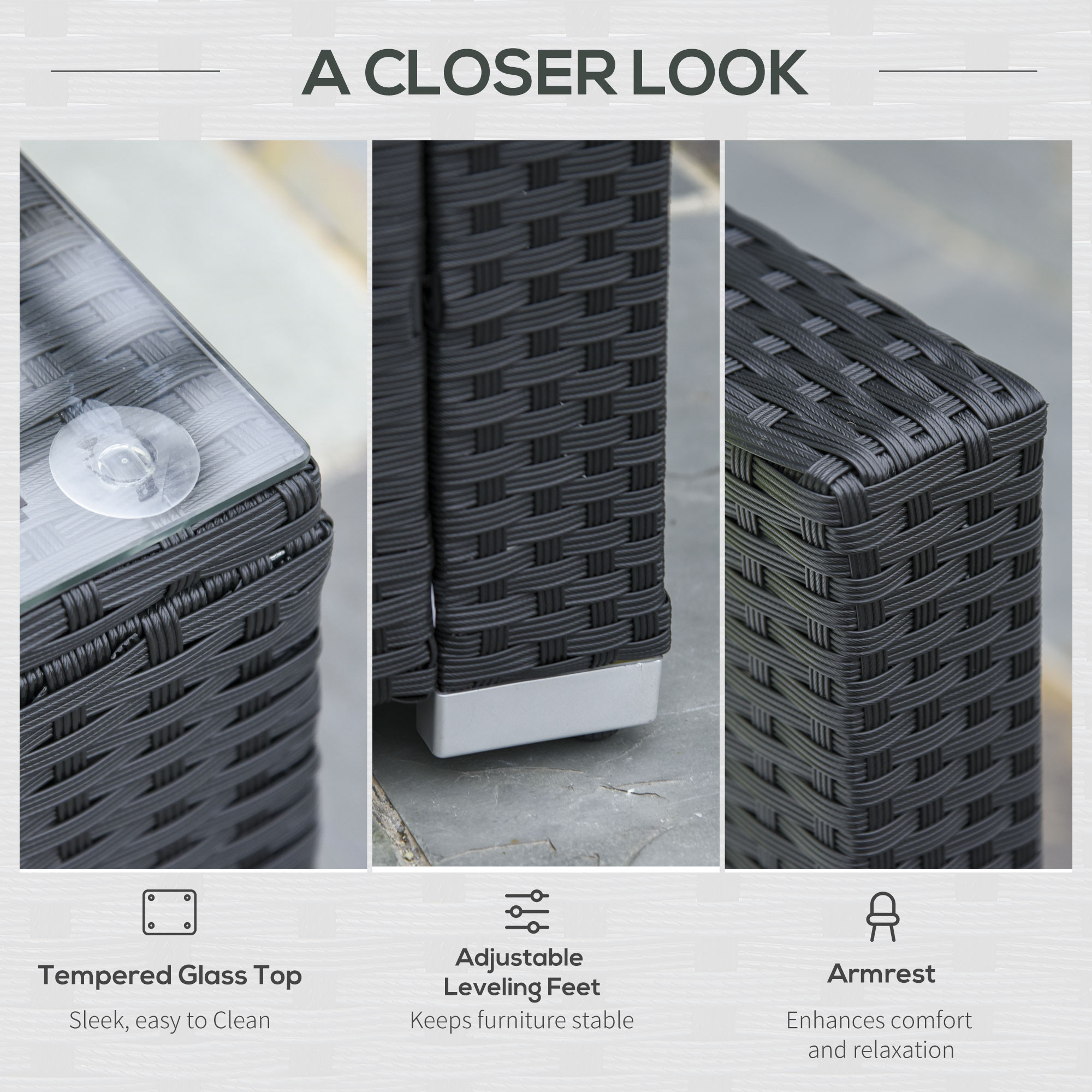 Outsunny 4-Seater Rattan Sofa Set Set Garden Outdoor Sectional Sofa Coffee Table Metal Frame w/Cushion Pillows-Black