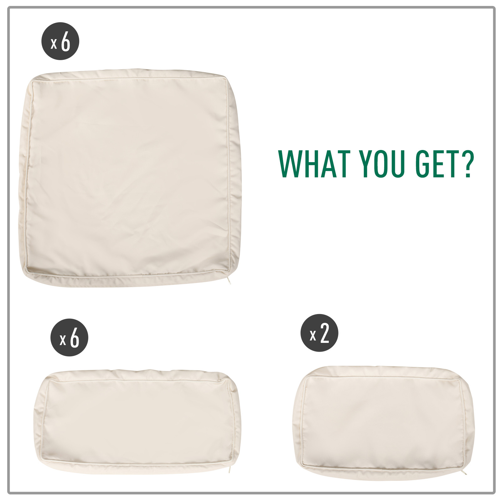 - Pack of 14 cushion covers: Includes six seat covers, six large back cushions and two small back cushions. The perfect revamp for your outdoor sofa sets this season and beyond.