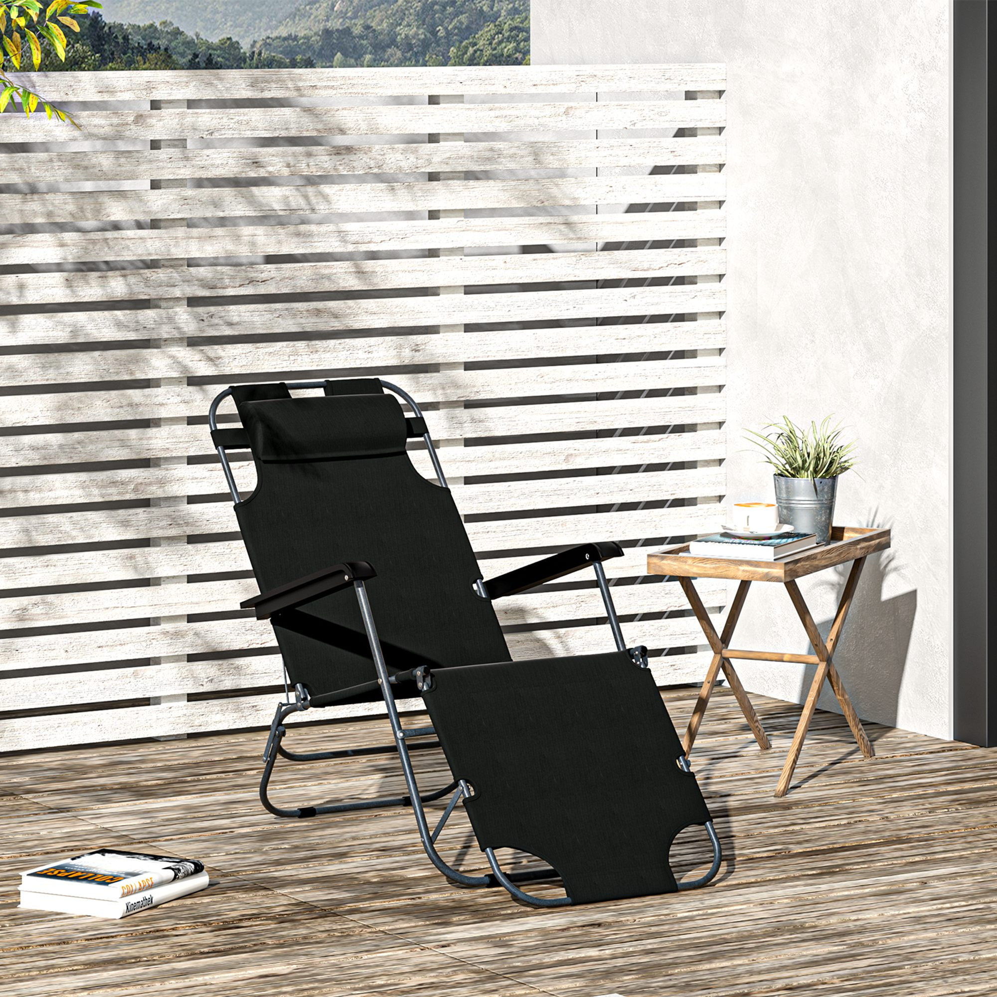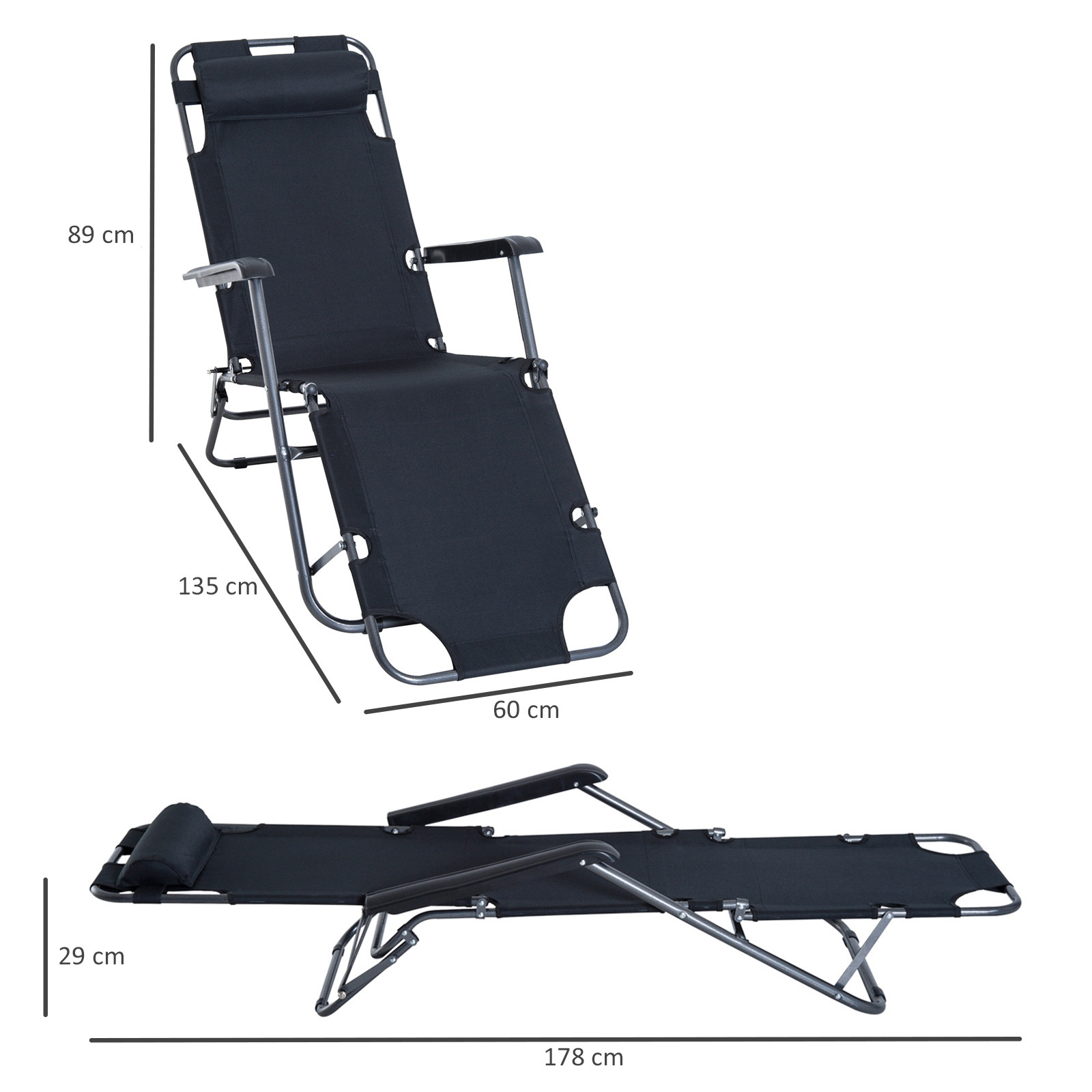Outsunny Metal Frame 2 In 1 Sun Lounger w/ Pillow Black