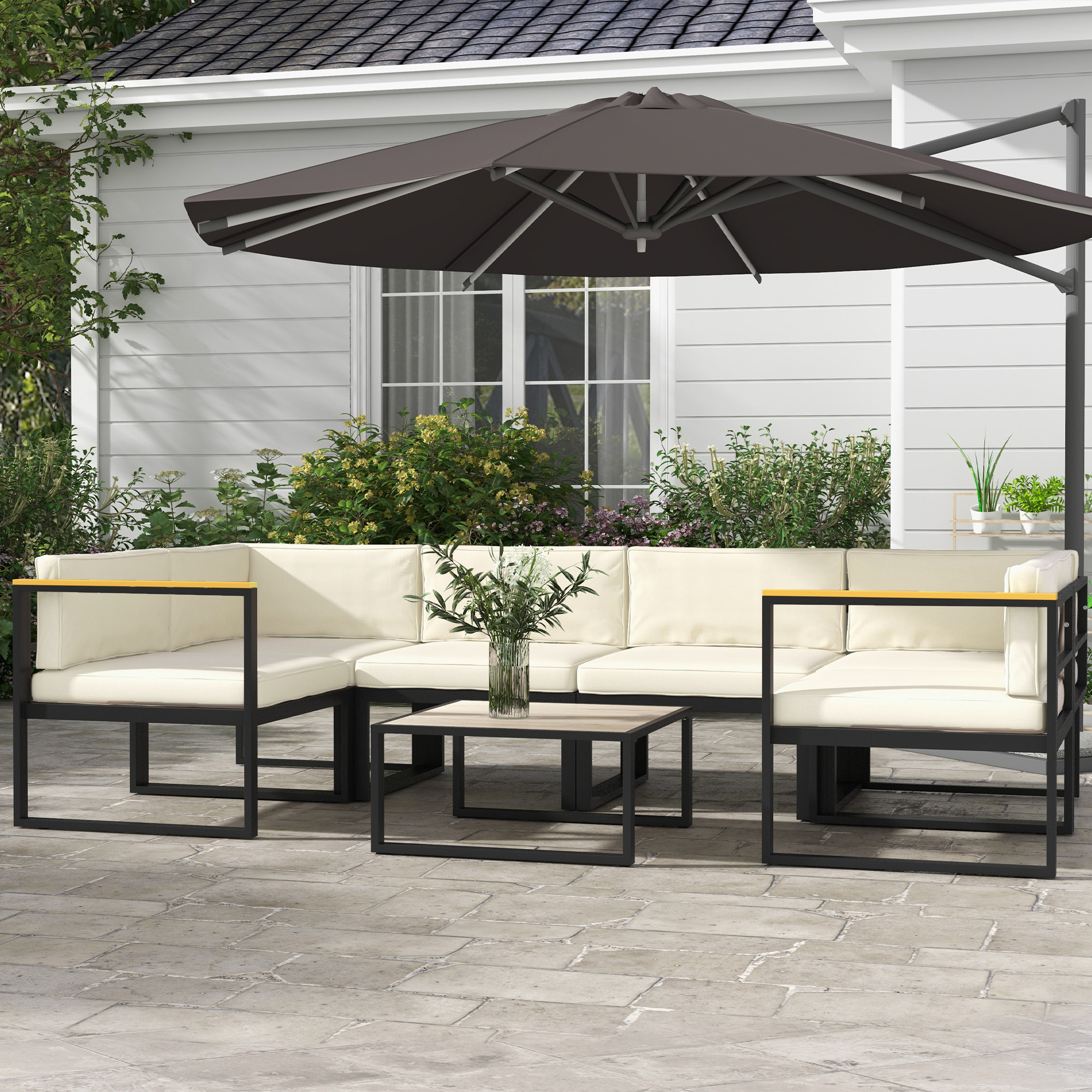 Outsunny Outdoor Replacement Seat Cushions for Rattan Furniture, 7 Seat Cushions and 7 Back Cushions for Patio Conversation Set