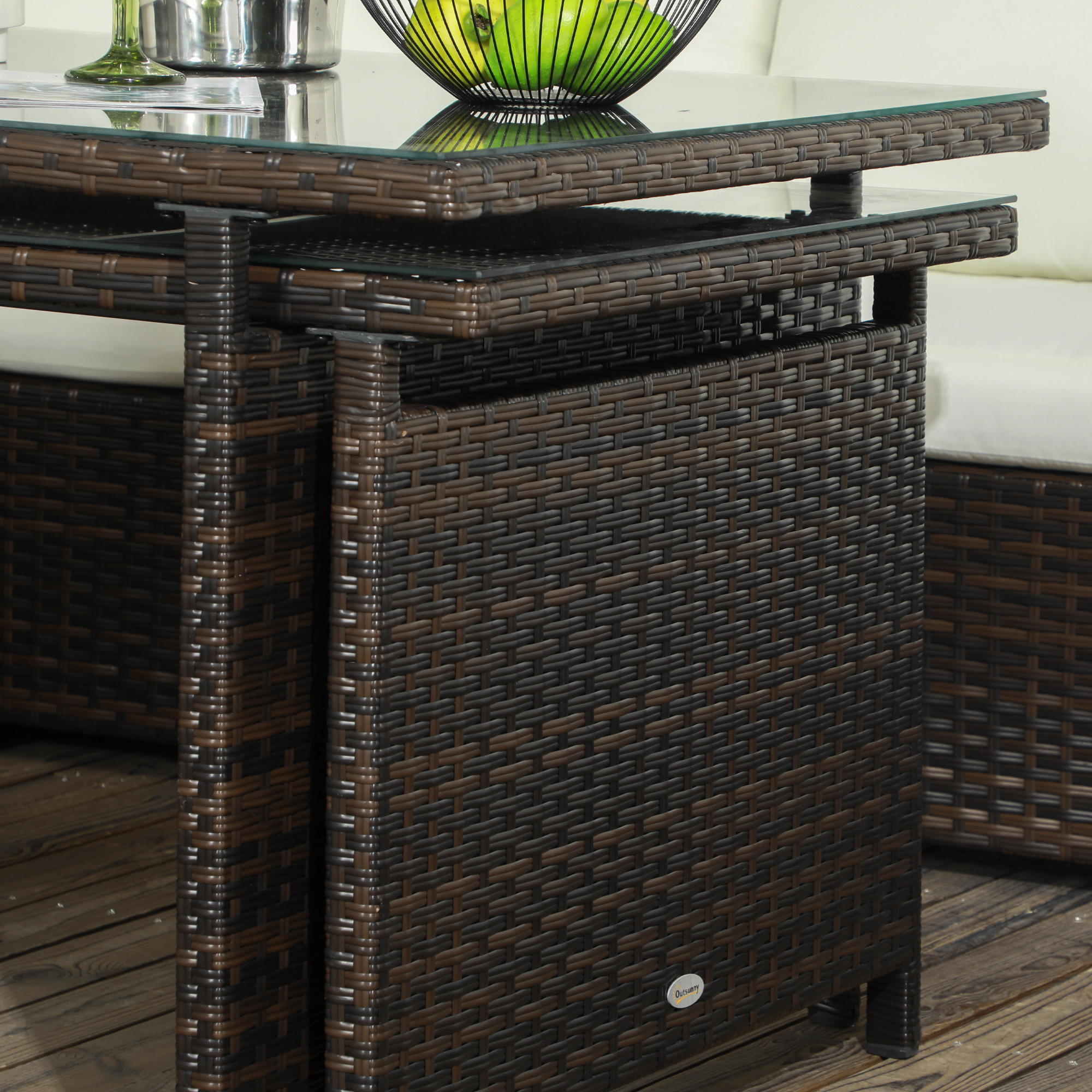 Outsunny Seven-Piece Rattan Garden Sofa Set, with Expanding Table - Cream White