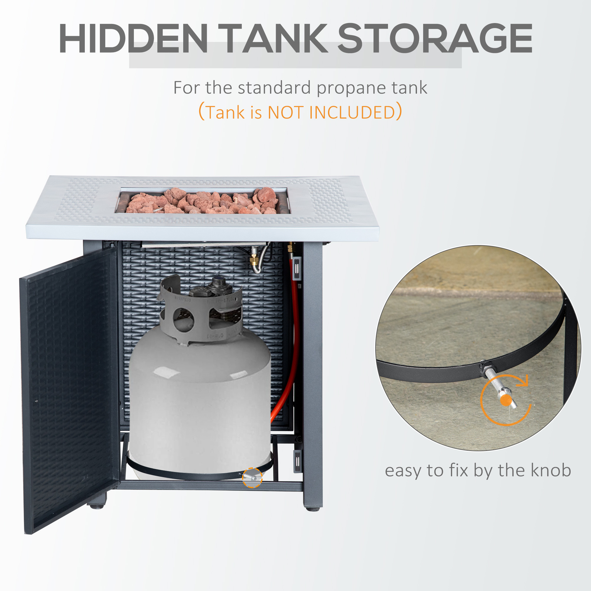 Outsunny Square Propane Gas Fire Pit Table, 40000 BTU Rattan Smokeless Firepit Patio Heater with Lava Rocks and Lid, 71cm x 71cm