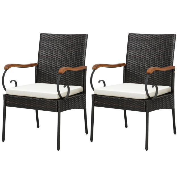 High-Grade PE Rattan: This 2-piece chair set boasts hand-woven mix brown PE rattan, which is not only nice-looking, but also anti-fading and built-to-last. Therefore, the rattan chairs are ideal for long-time outdoor use.