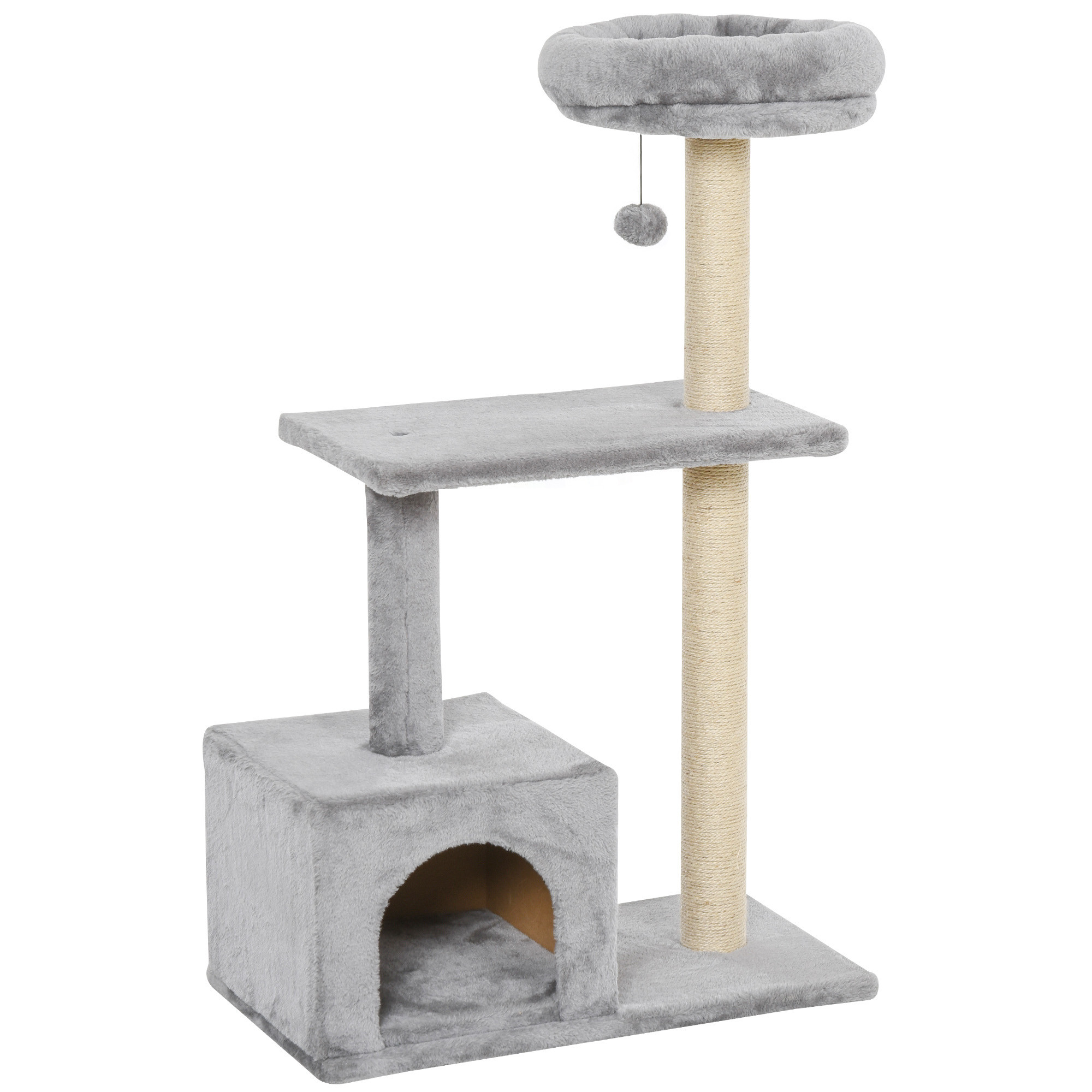 PawHut 96cm Cat Tree for Indoor Cats Condo Sisal Scratching Post Cat Tower Kitten Play House Dangling Ball Activity Center Furni