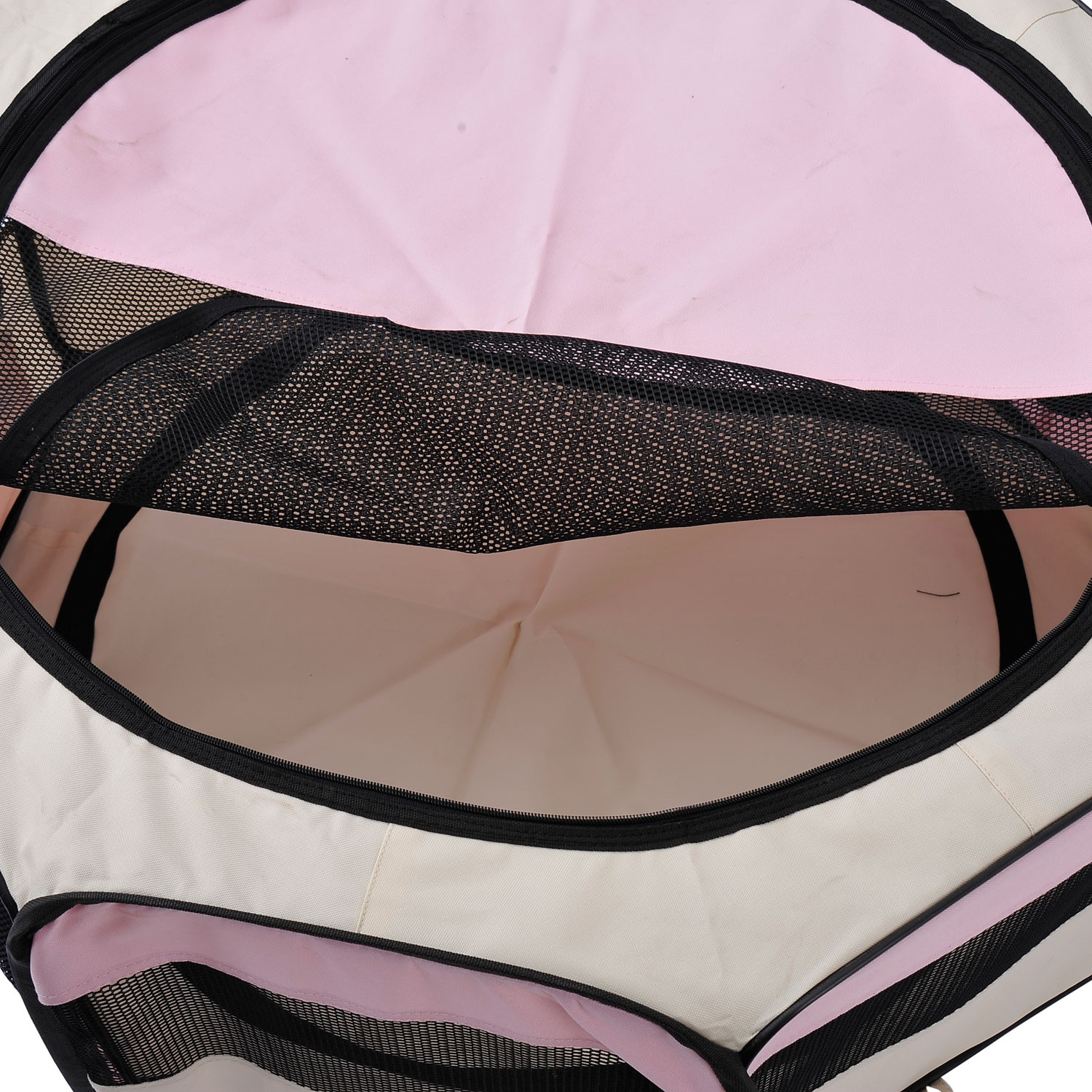 PawHut Portable Cat Dog Playpen Pet Puppy Rabbit Guinea Pig Pen Run Dia 90 x 41H cm Indoor & Outdoor Pink