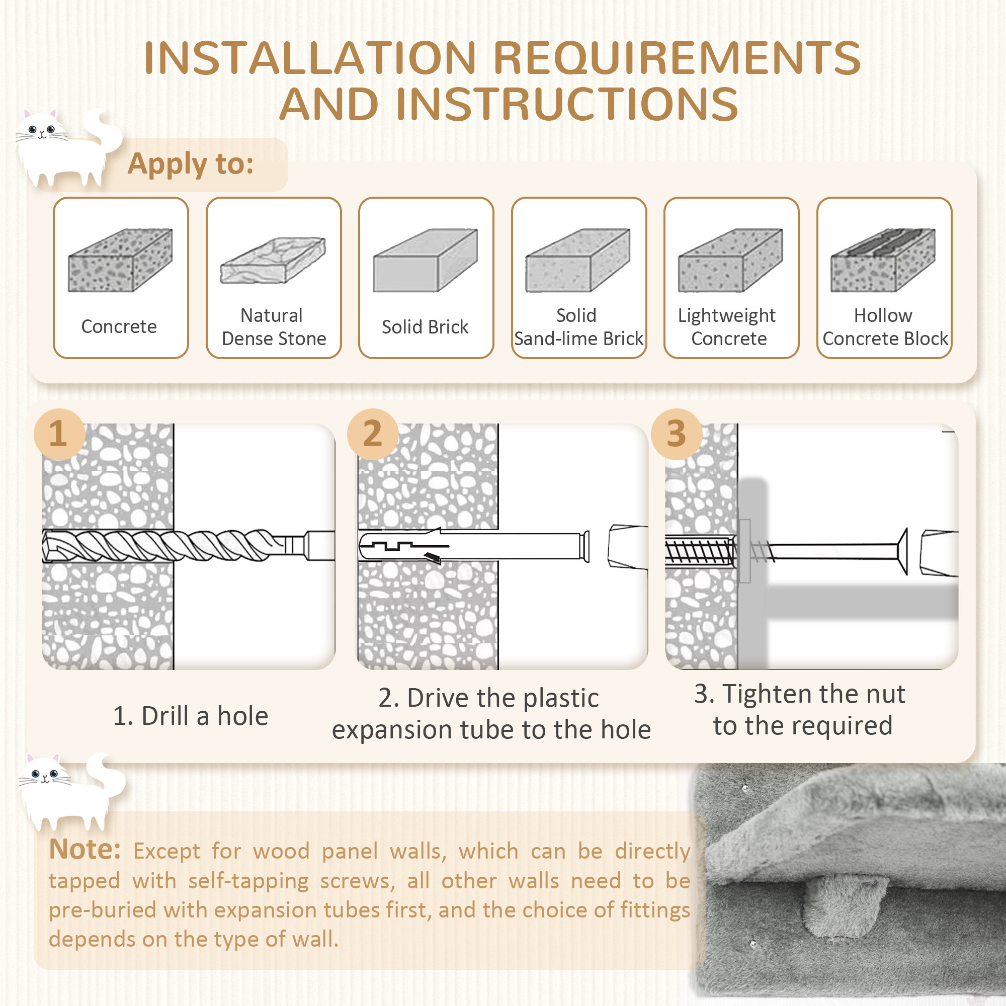 - Solid material: Made with particle board, this cat wall is stable, keeping them safe and supported.