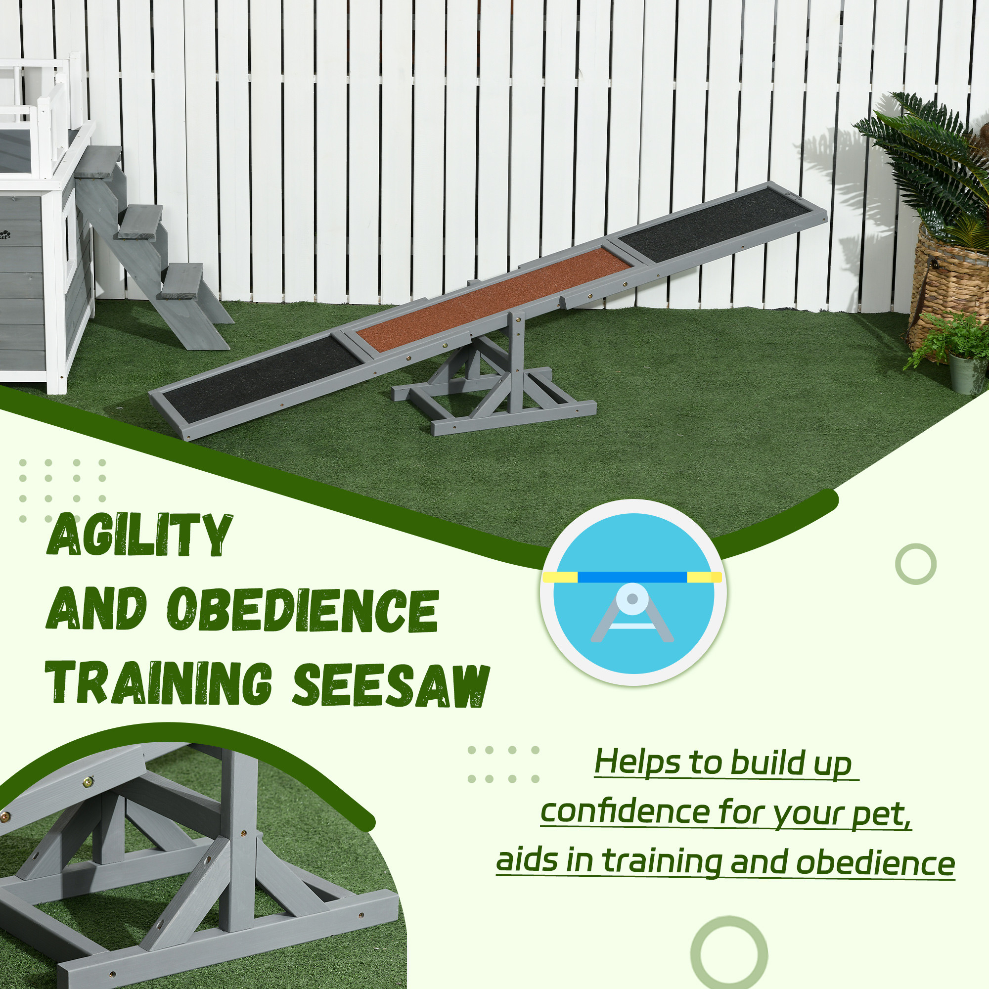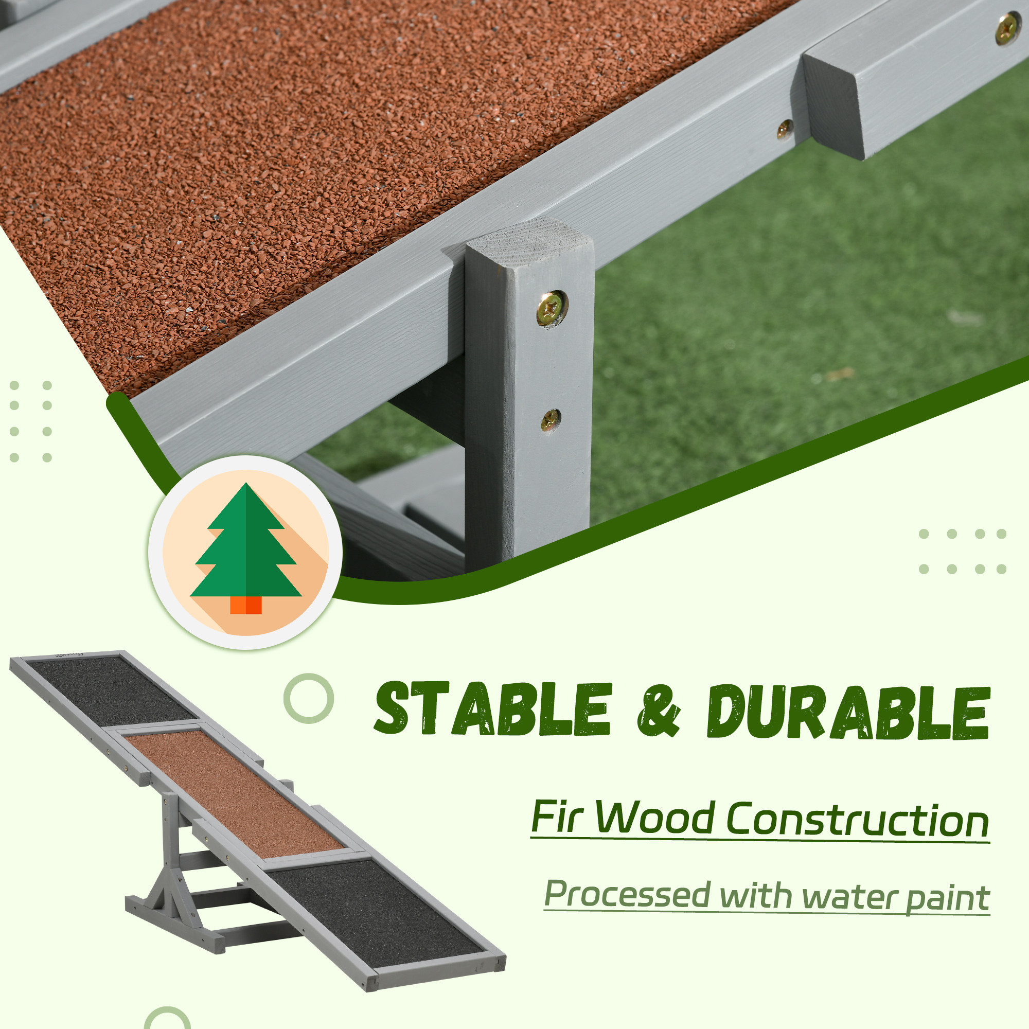 PawHut Wooden Pet Seesaw for Big Dogs, Dog Agility Equipment with Anti-Slip Surface - Grey