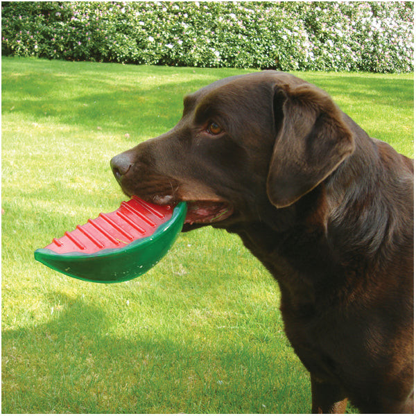 This Watermelon Biosafe dog toy provides a more hygienic toy for your pet and your family. It is coated in BioCote, which is an antimicrobial technology - something which prevents the growth and survival of microbes including bacteria, mould and fungi. Lower levels of bacteria mean improved hygiene, reductions in staining and odours and premature degradation of materials. BioCote technology will therefore make this product more hygienic, keep it fresher for longer and extend the usable lifetime of this product. Massages gums and reduces plaque and tartar build-up, constructed out of tough yet soft plastics, is treated with a zesty fruit scent and even floats too! The cavity of the watermelon can also be filled with water and placed in the freezer for added play value.