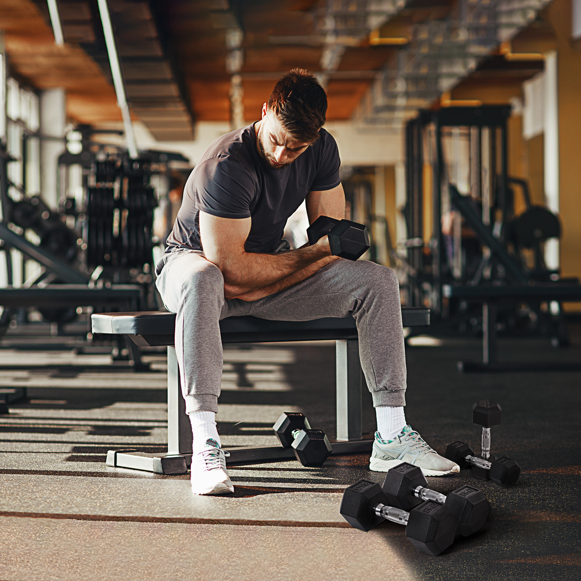 - HEXAGONAL ANTI ROLL: The hexagonal heads with flat edges prevent rolling so that you can do a lot of fitness movements in safer condition